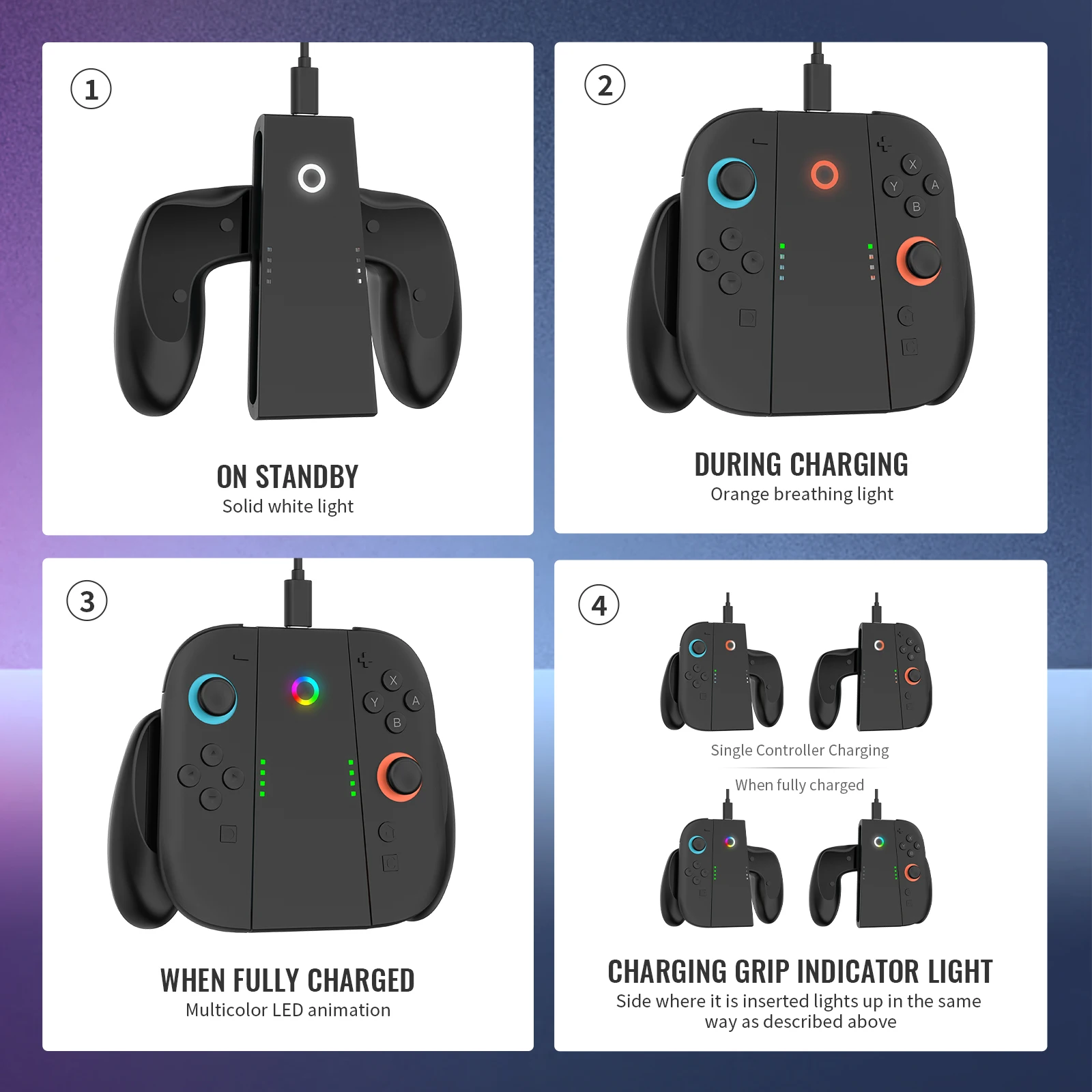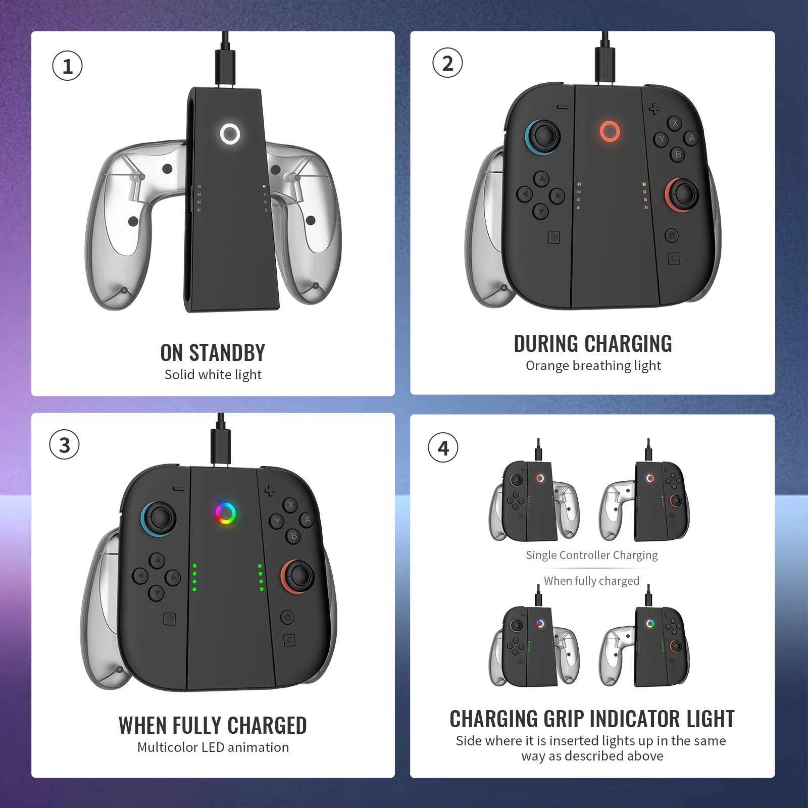 Comprar Para Switch 2 Joy-con cargador interruptor de agarre 2 accesorios interruptor 2 Joy Con controlador comodidad empuñaduras de carga con indicador LED