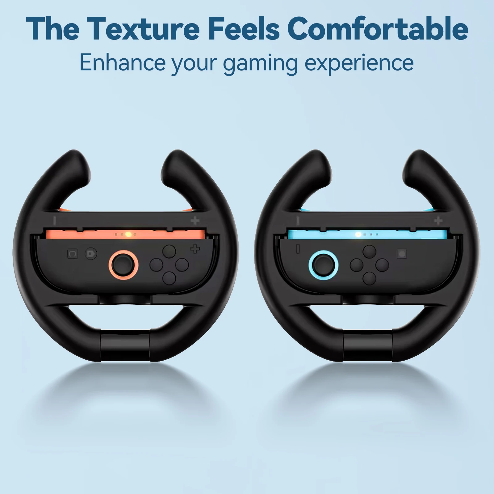 Incluye dos volantes negros, cada uno compatible con Joycons izquierdo y derecho, lo que lo hace perfecto para juegos multijugador.