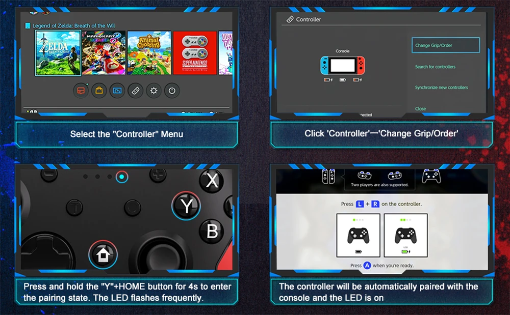🎮【Amplia compatibilidad】Este controlador de interruptor inalámbrico para Switch/Switch Lite/Switch OLED, también puede usar un cable USB para conectarse con PC con Windows y teléfonos Android. Los controladores de interruptores funcionan para todos los juegos de interruptores.