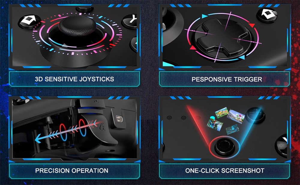 🎮【Controlador de interruptor función incorporada】 El controlador de interruptor inalámbrico tiene motores electrónicos de doble vibración incorporados que hacen que el jugador sea inmersivo y retroalimente con precisión la vibración de la mano de cada impacto y colisión. Los Sticks y Botones analógicos de alta sensibilidad son suaves, prácticamente sin retraso ni deriva de entrada. Proporciona una mayor sensación de control y una experiencia de juego más auténtica sin importar a lo que juegues.