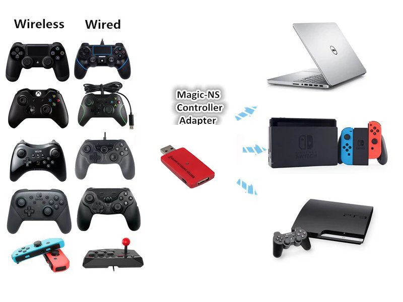 Comprar Para Switch Pro/PS3/Xbox One S/PC cable + convertidor adaptador de controlador inalámbrico