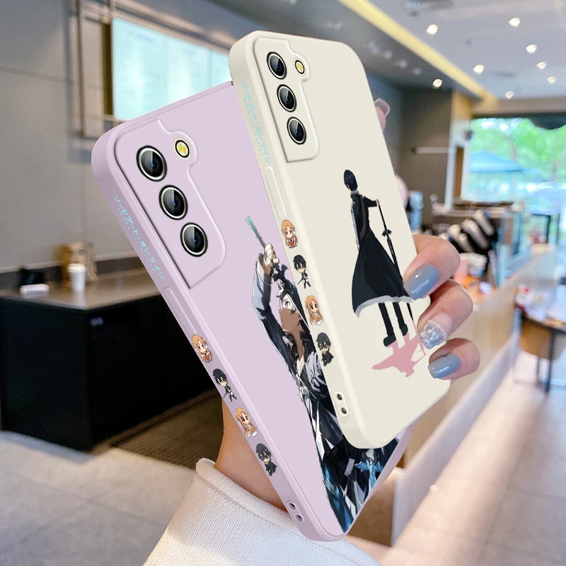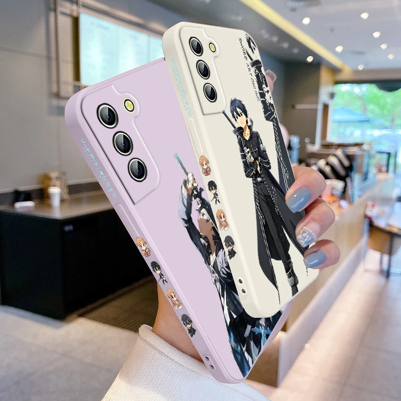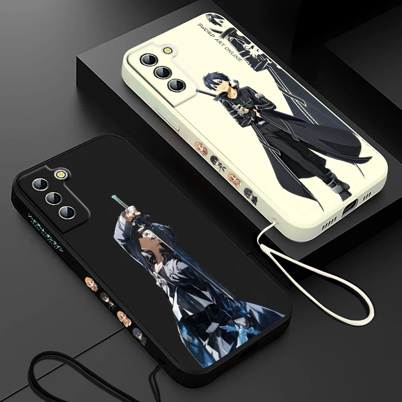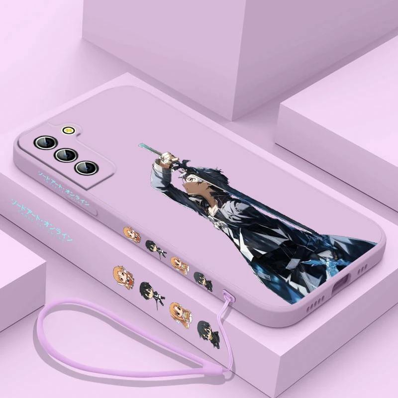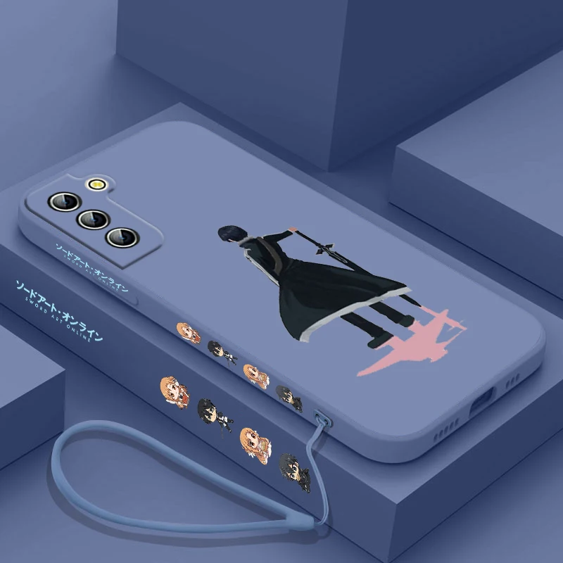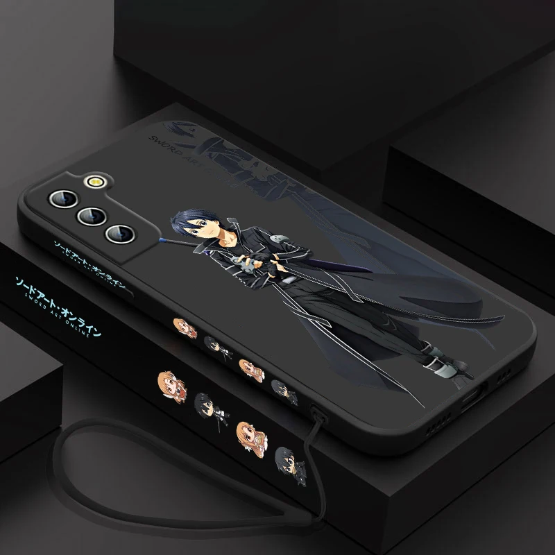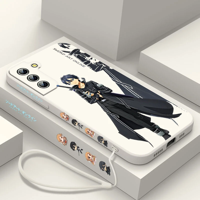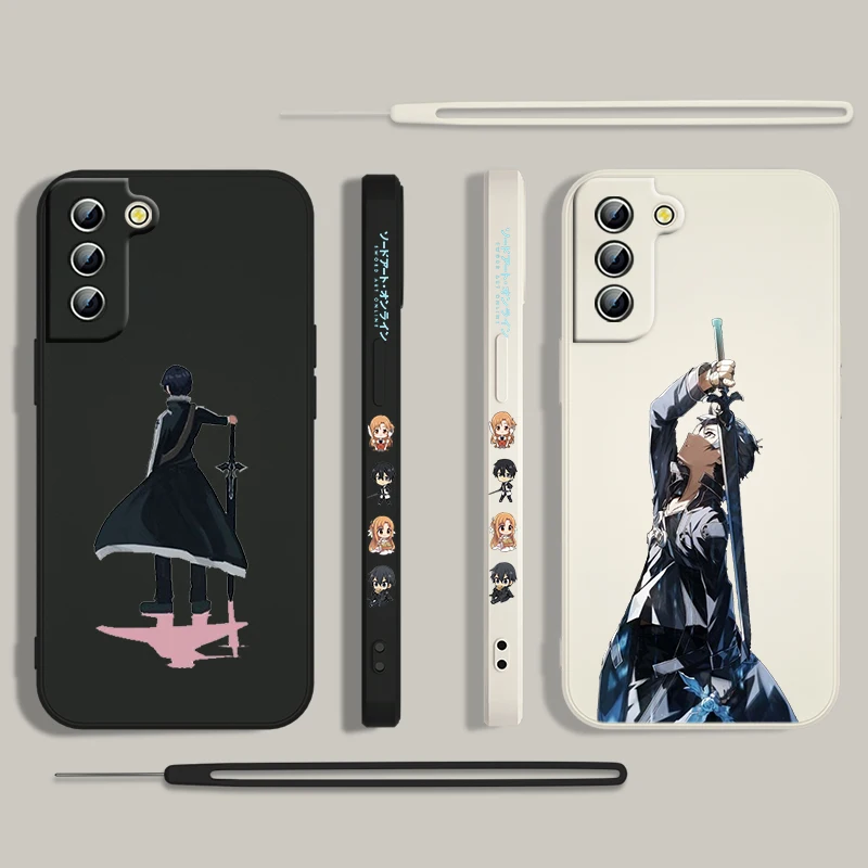 Comprar Sword Art Online funda de teléfono para Samsung Galaxy S24, S23, S22, S21, S20 Pro FE Plus, Ultra líquida, cubierta de cuerda izquierda