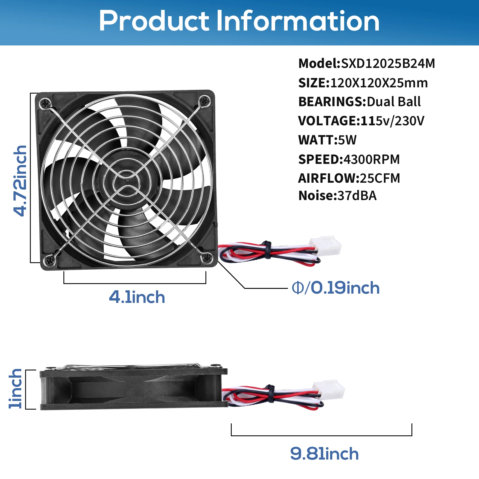 Comprar SXDOOL 120mm DC 24V ventilador con caja, 120X120X25mm rodamiento de bolas doble 24V 3000RPM, para inversor de servidor de máquina de soldadura