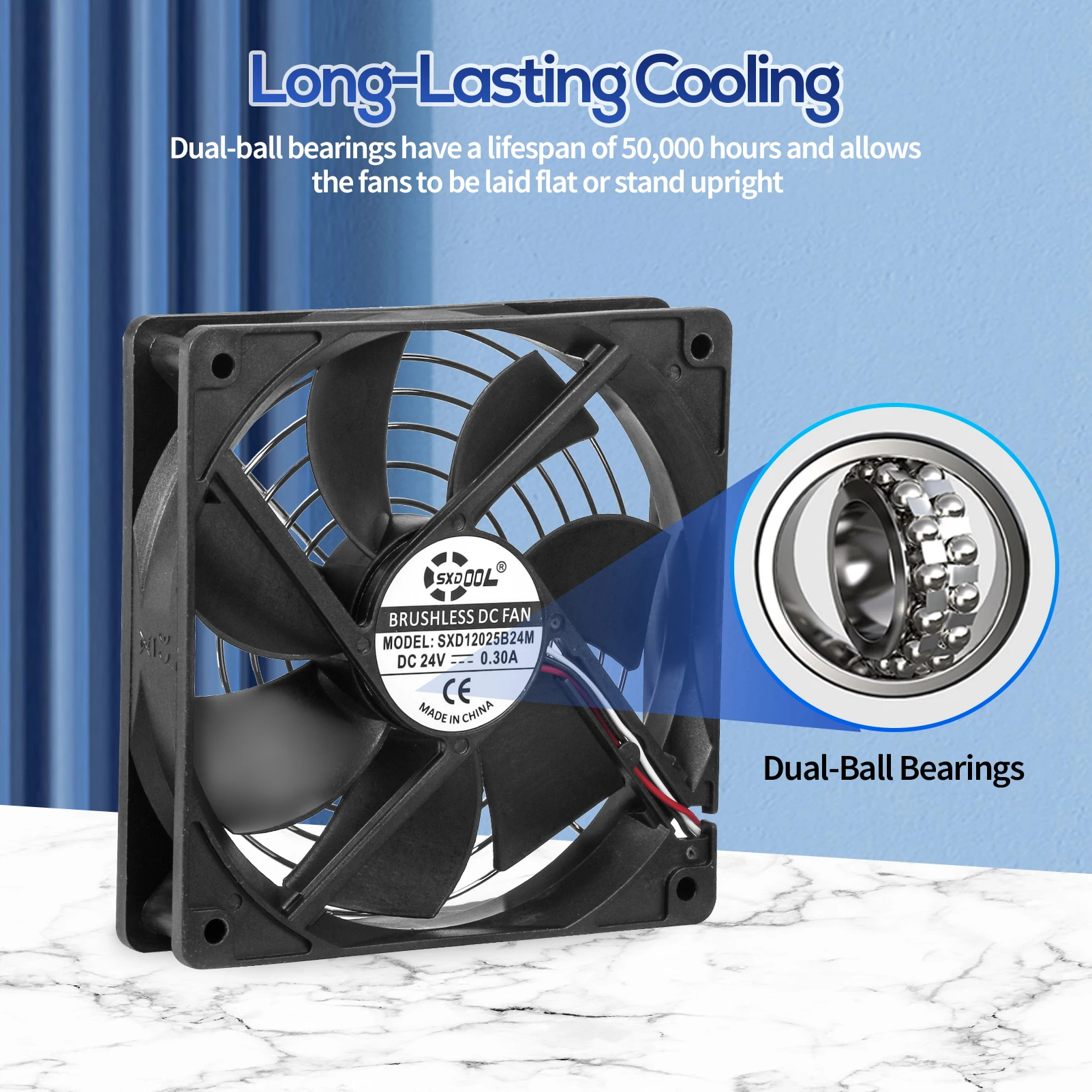 Comprar SXDOOL 120mm DC 24V ventilador con caja, 120X120X25mm rodamiento de bolas doble 24V 3000RPM, para inversor de servidor de máquina de soldadura