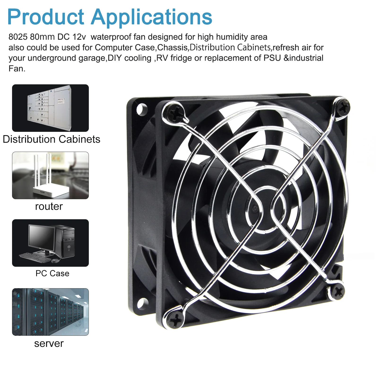 Comprar SXDOOL 80mm DC 12V ventilador de refrigeración IP68 impermeable, 80X80X25mm CFM de alta velocidad 3600RPM, para gabinetes de chasis de computadora refrigerador de PC