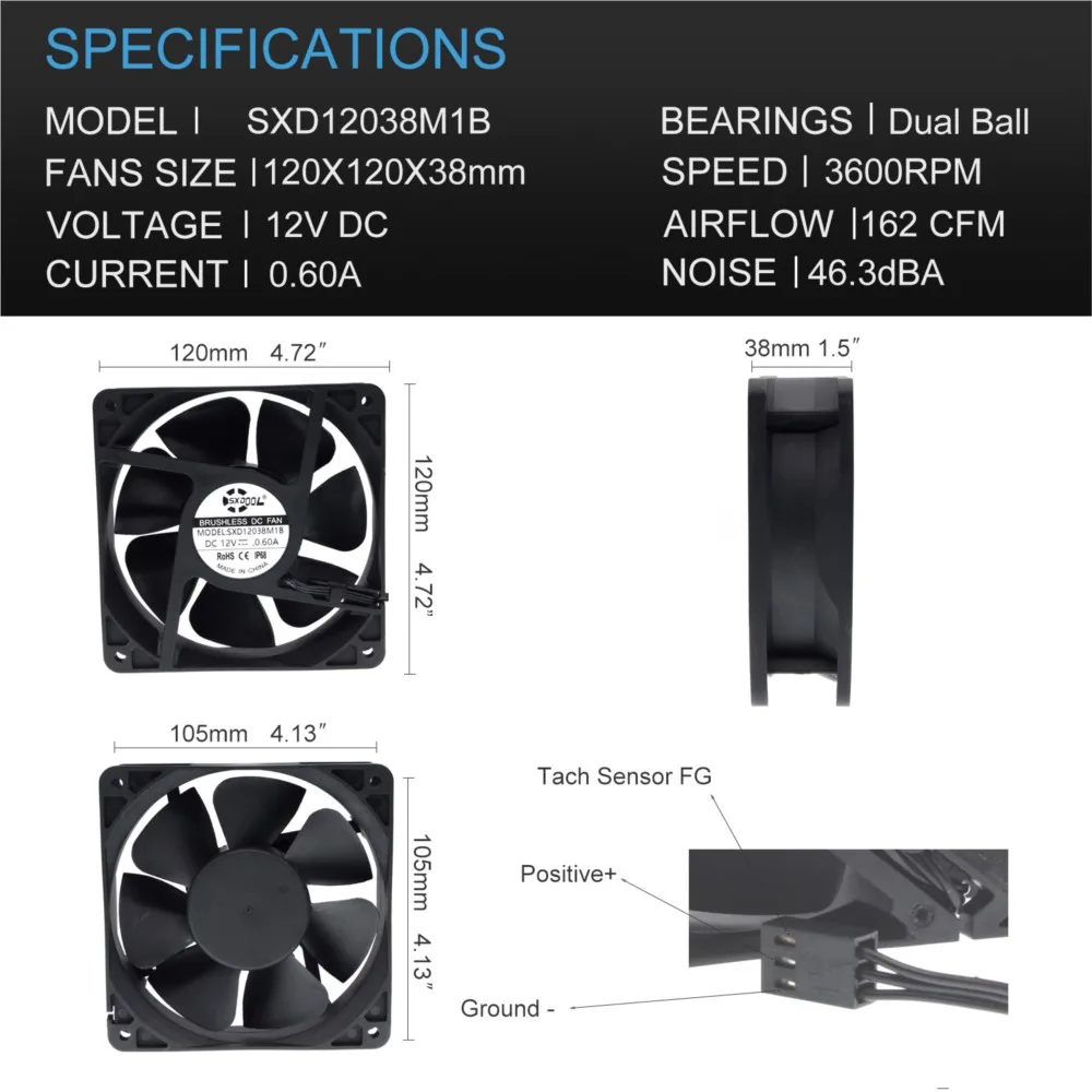 LARGA DURACIÓN: El ventilador con rodamiento de bolas dual de 12 V brinda una larga vida útil proyectada de hasta 50.000 horas, eso es más de 5 años.Respaldado por el fabricante con una garantía de 1 año.
