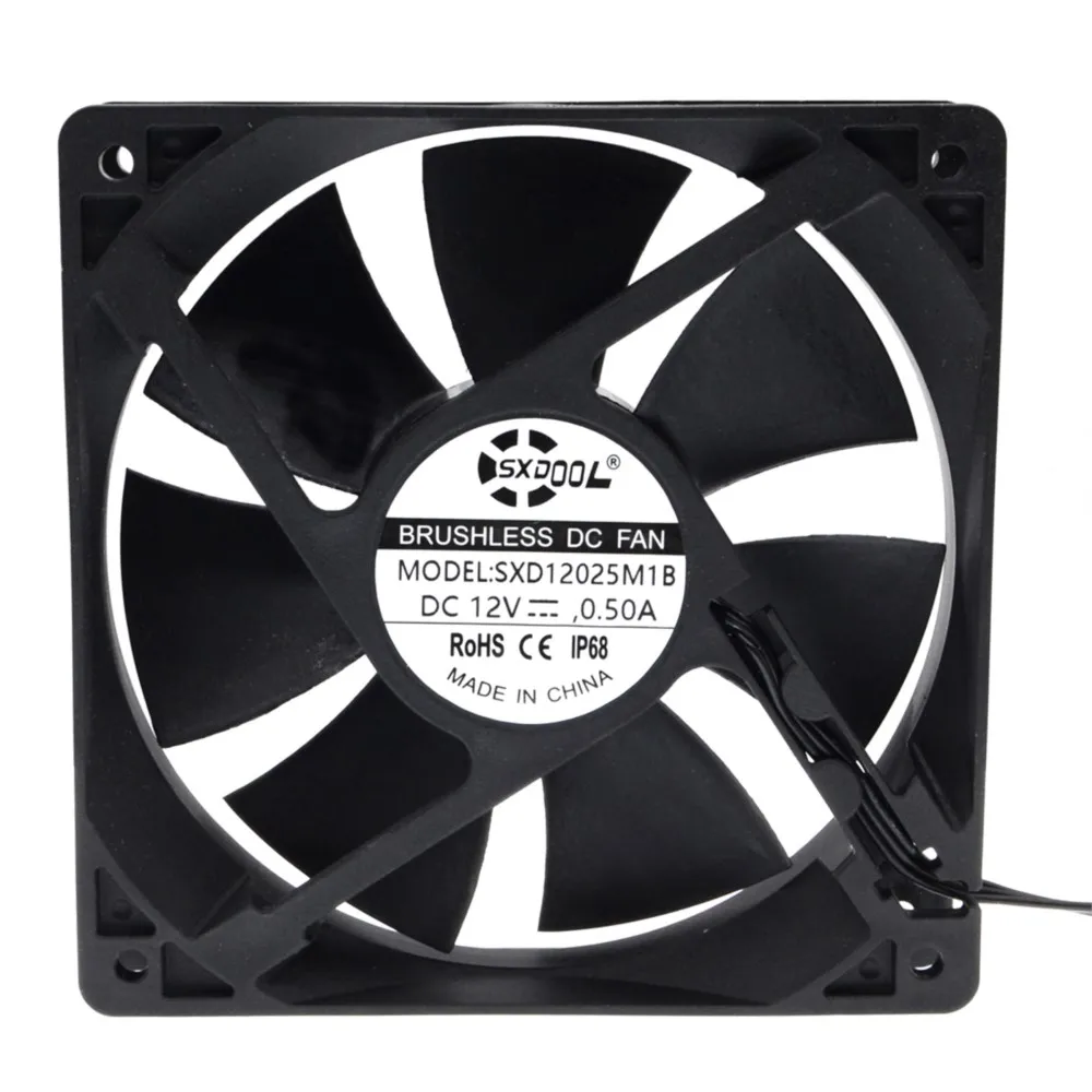 SXDOOL 120 mm (120x120x25) Ventilador de refrigeración para PC de computadora impermeable de flujo de aire de alta velocidad ESPECIFICACIONES DEL PRODUCTO: Tamaño del ventilador: 120x120x25 mm RPM: 3050 +/- 10% Corriente nominal: Máx. Flujo de aire de 50 A: 106 CFM Ruido: 43. 2 dB Voltaje nominal: 12 V CC Tipo de rodamiento: Rodamiento de bolas dual ¿Qué son los ventiladores impermeables? SXDOOL Cooling presenta un ventilador de refrigeración con capacidad de impermeabilidad IP68 Imagen de ventiladores impermeables SXDOOL Para aplicaciones que requieren protección contra la humedad y el polvo, SXDOOL ofrece ventiladores axiales y centrífugos con clasificación IP54, IP55 e IP68 en varios tamaños. Los ventiladores IP54 tienen un laberinto de humedad y un revestimiento conformado para protección, mientras que los ventiladores IP55 e IP68 tienen un motor y una PCB completamente encapsulados. Estos ventiladores son capaces de soportar una amplia gama de exposición al agua y al mismo tiempo proporcionan un alto rendimiento de flujo de aire. Características IP54, IP55, o IP68 Protección contra la humedad y el polvo Alto flujo de aire Aplicaciones Equipos para exteriores Ambientes hostiles Equipos de procesamiento de alimentos Iluminación exterior Planta doméstica