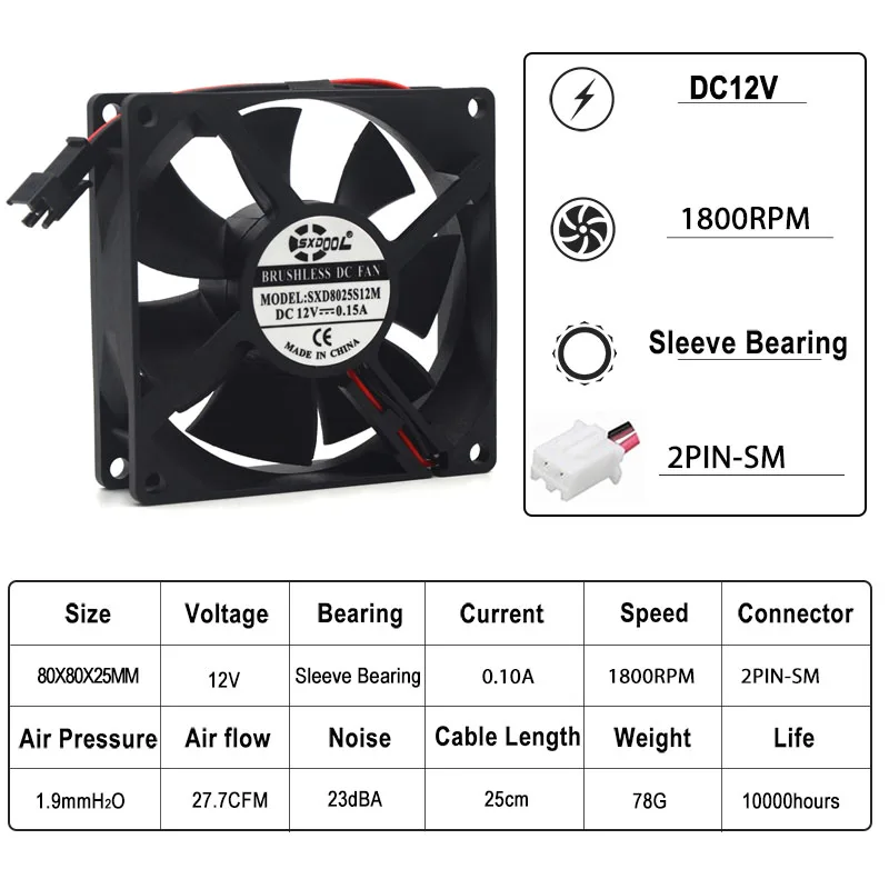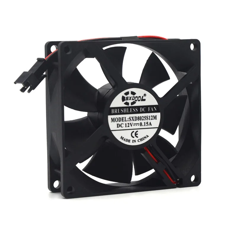 Comprar SXDOOL-ventilador de refrigeración de 80mm, Conector de enchufe SM de 8cm, 12V, 0.15A, 1800RPM, 8025 DC, 12V, Motor de ventilador de 2 pines, 80mm x 25mm, 1 ud.