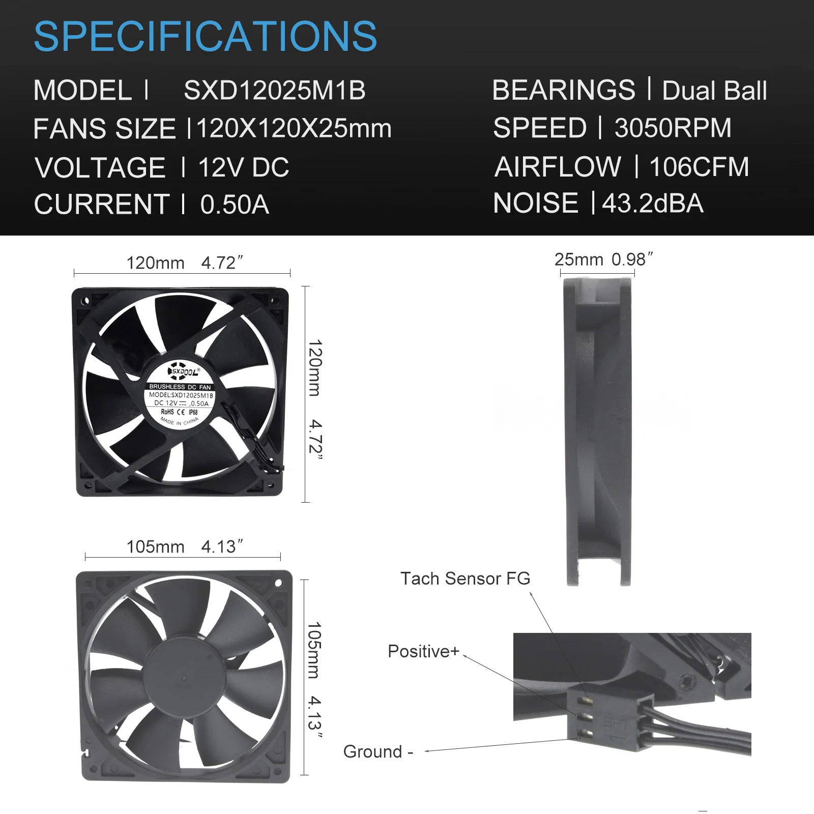 Comprar SXDOOL-ventilador de refrigeración de alta velocidad, enfriador CFM de 120 RPM, 3050mm, 12cm, impermeable, a prueba de polvo IP68, 120x120x25mm, 3P, 3 pines, rodamiento de bolas Dual