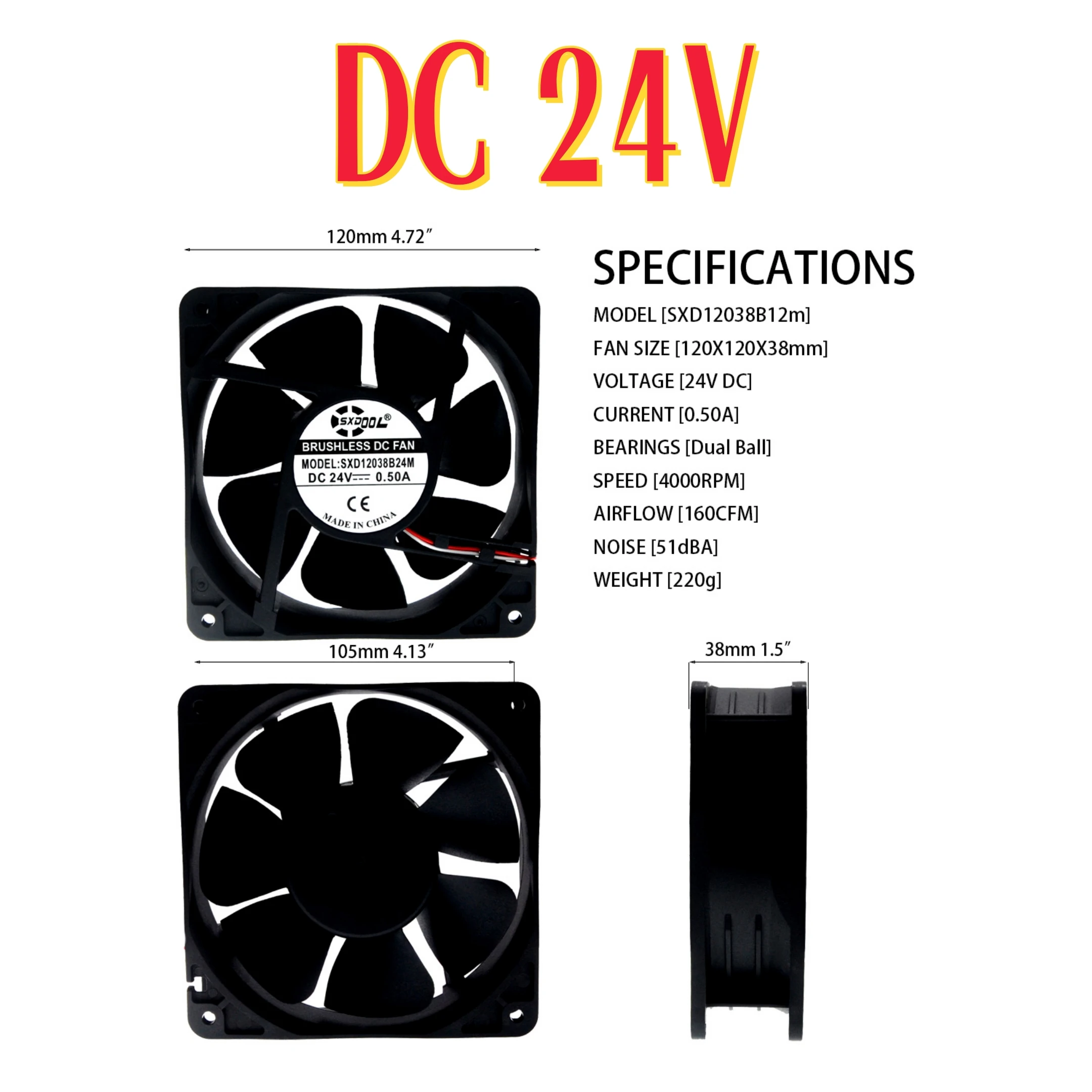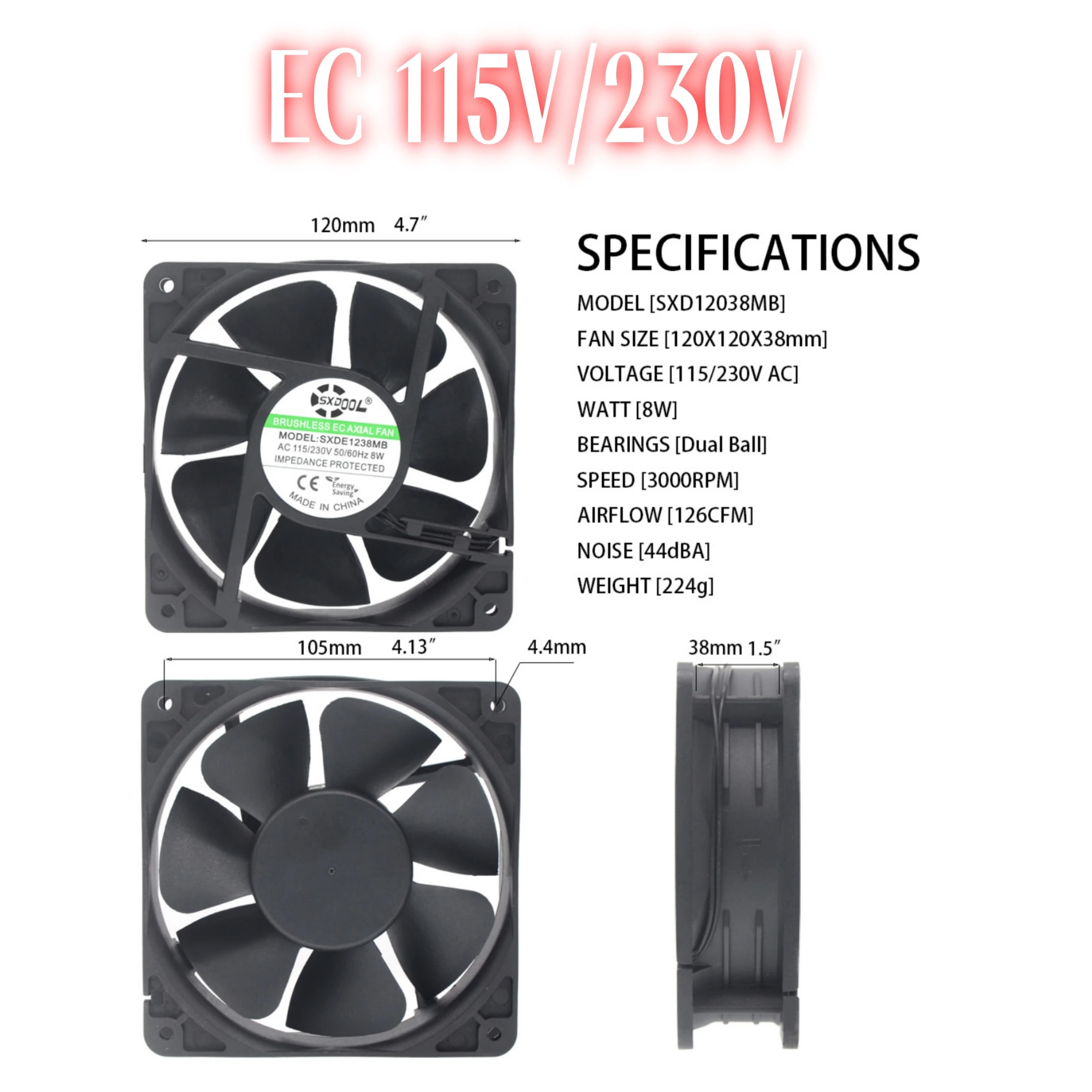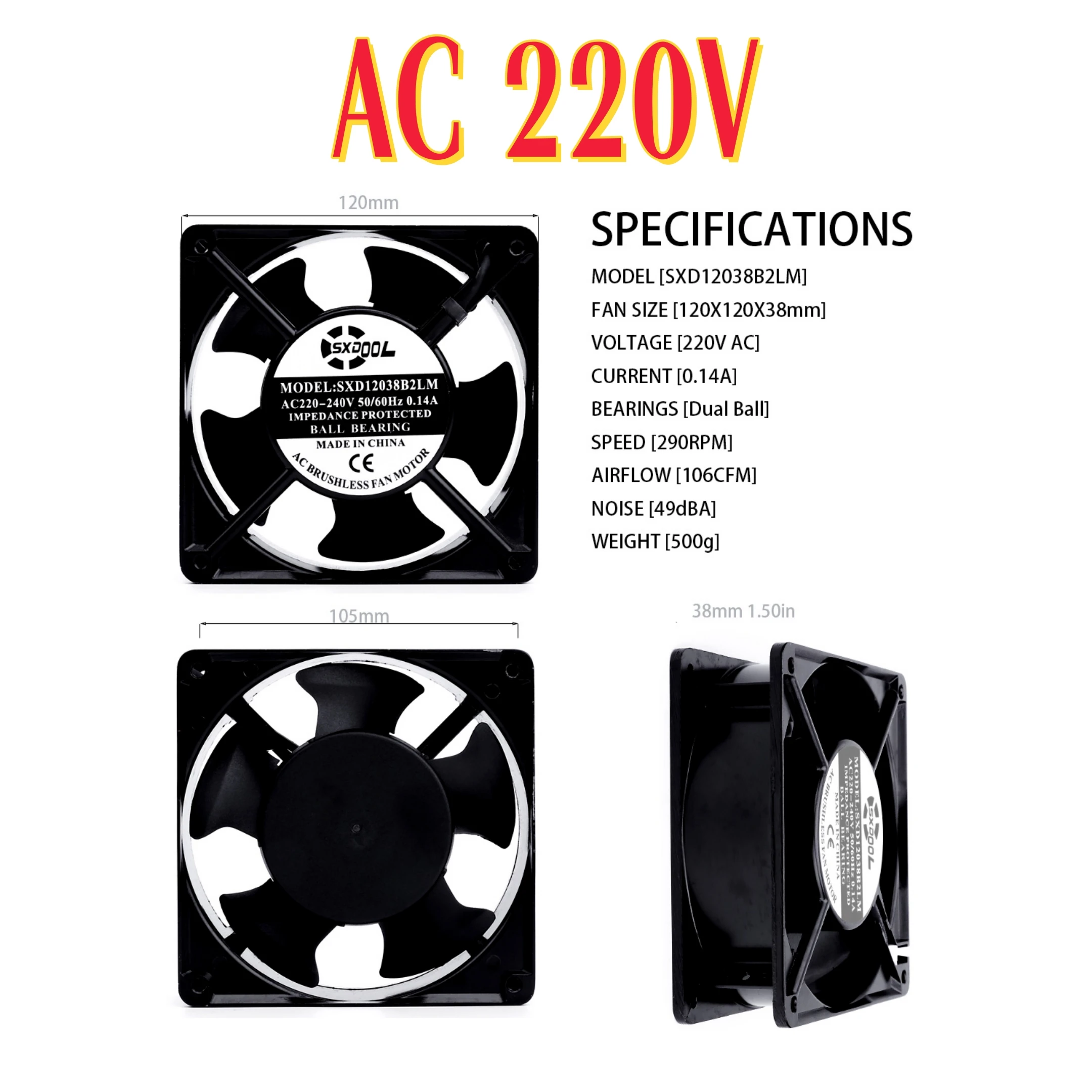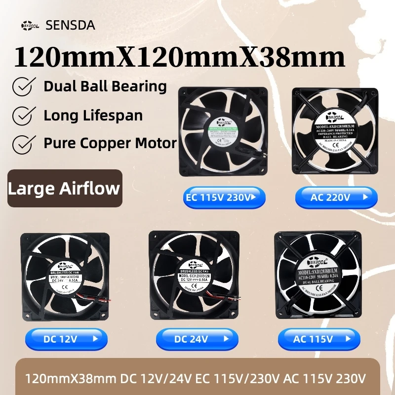 Comprar SXDOOL-ventilador de refrigeración Axial con rodamiento de bolas Dual, 120mm X 38mm, AC 110V, 220V, EC 115V, 230V, DC 12V, 24V, para armarios