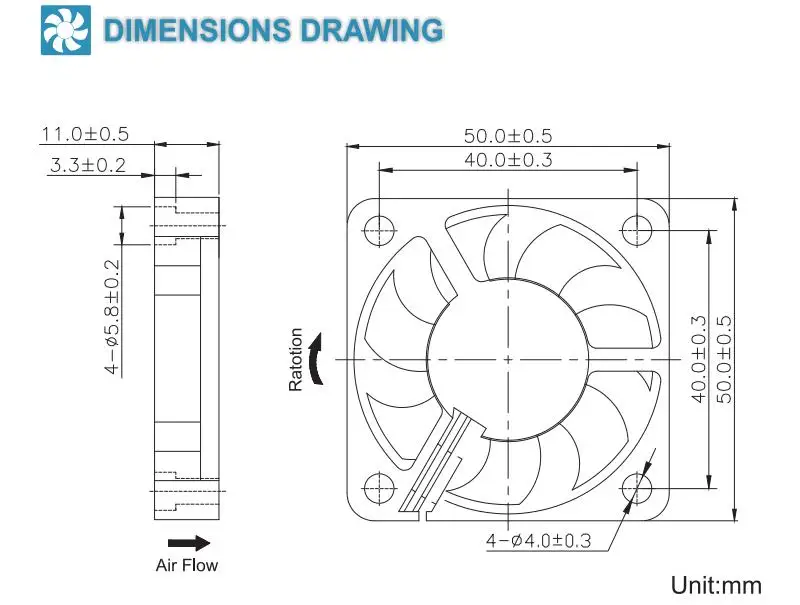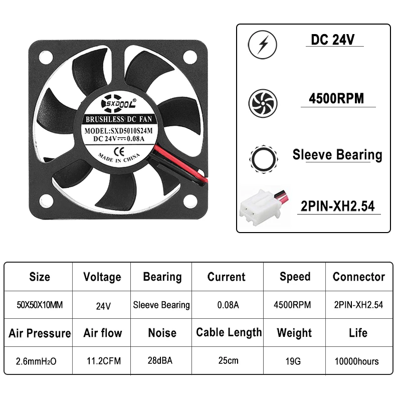 5cm 50mm 50x50x10mm 5010s 24V Ventilador de refrigeración de CC sin escobillas