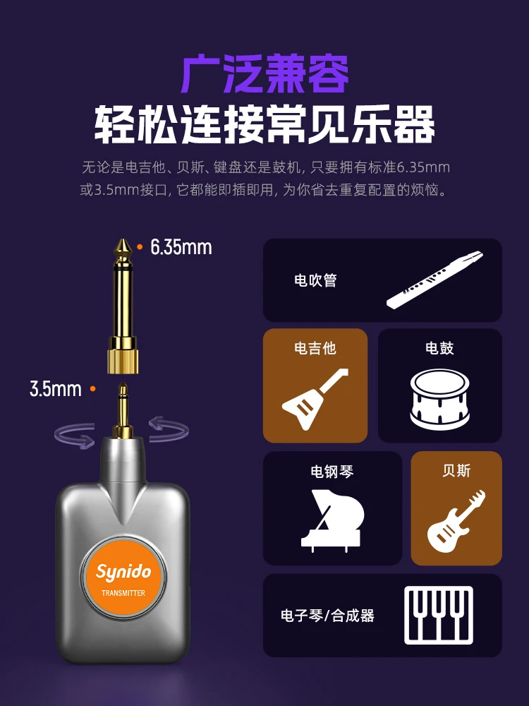 Comprar Synido SW100 guitarra eléctrica transmisor inalámbrico receptor tubo de soplado eléctrico conexión Bluetooth transceptor accesorios de música