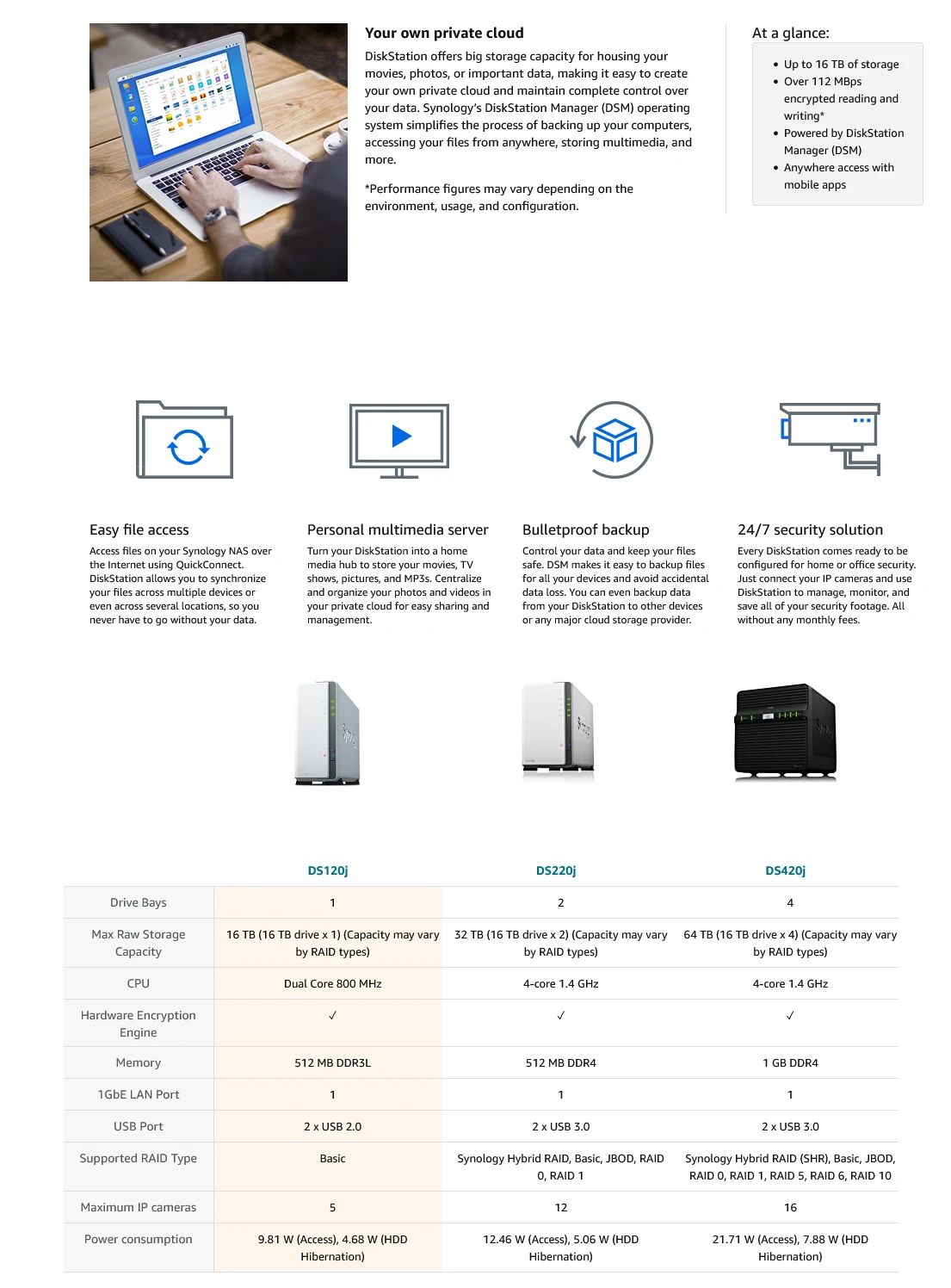 Comprar Synology DiskStation-NAS de 1 Bahía DS120j, almacenamiento en red, disco duro de servidor de almacenamiento Personal en la nube, 512MB, DDR3L (sin disco)