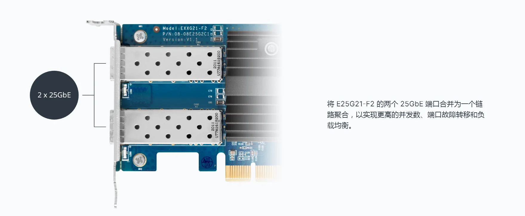 Synology E25G21 - F2 puerto dual 25 gbe SFP28 especialmente diseñado, compatible con aplicaciones de implementación a gran escala y alto rendimiento. Hace que el administrador del sistema pueda jugar tanto como sea posible, compatible con el potencial de rendimiento Synology NAS y IP SAN.