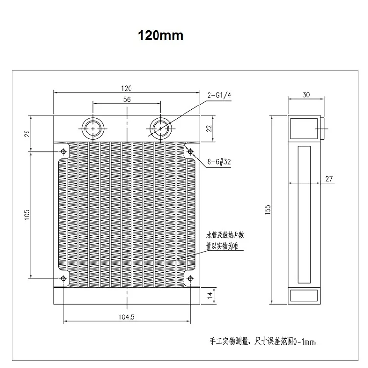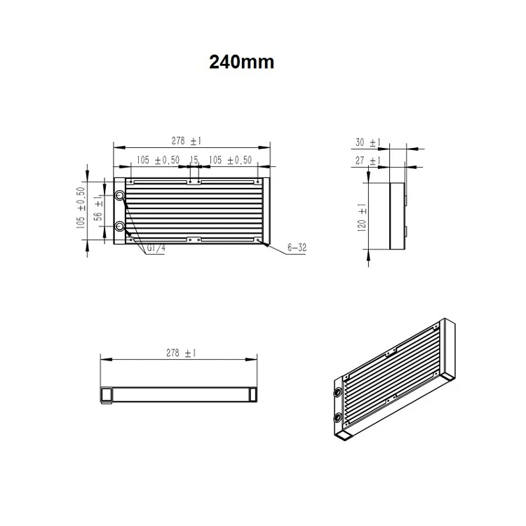 Radiador de aluminio para refrigeración por agua, con rosca G1/4, color blanco.
