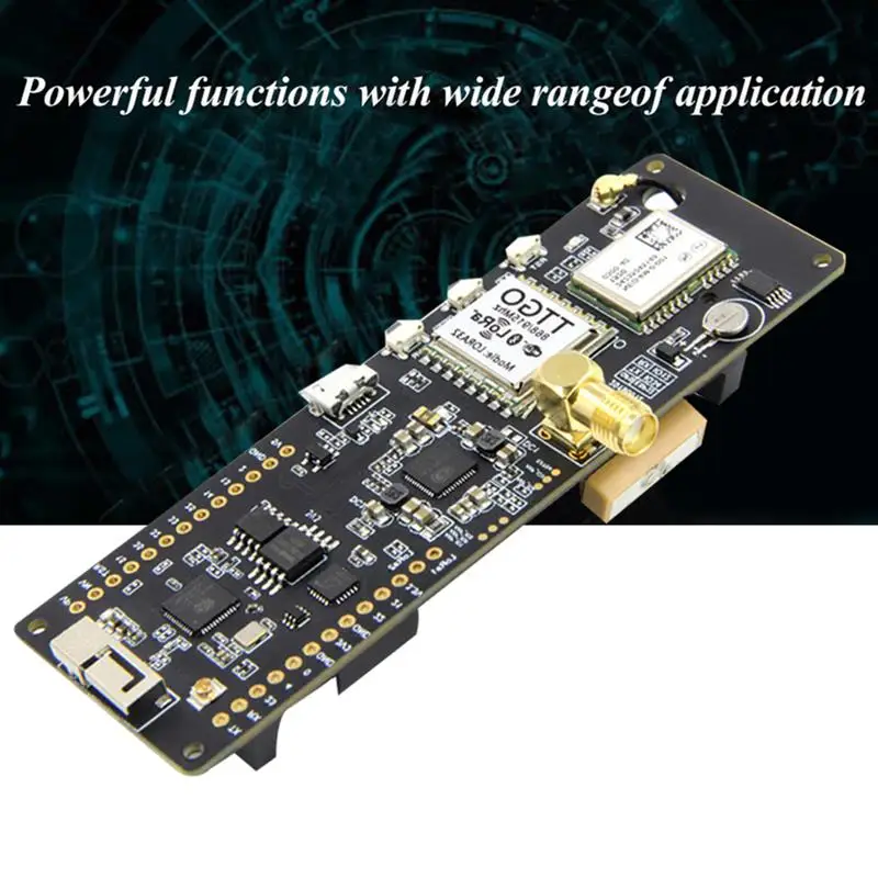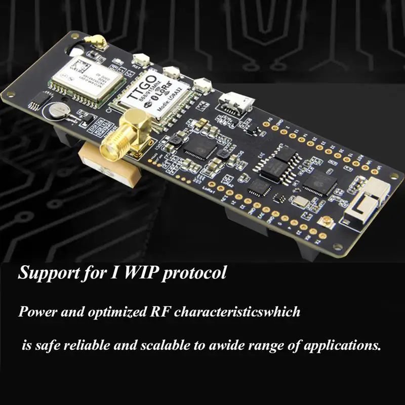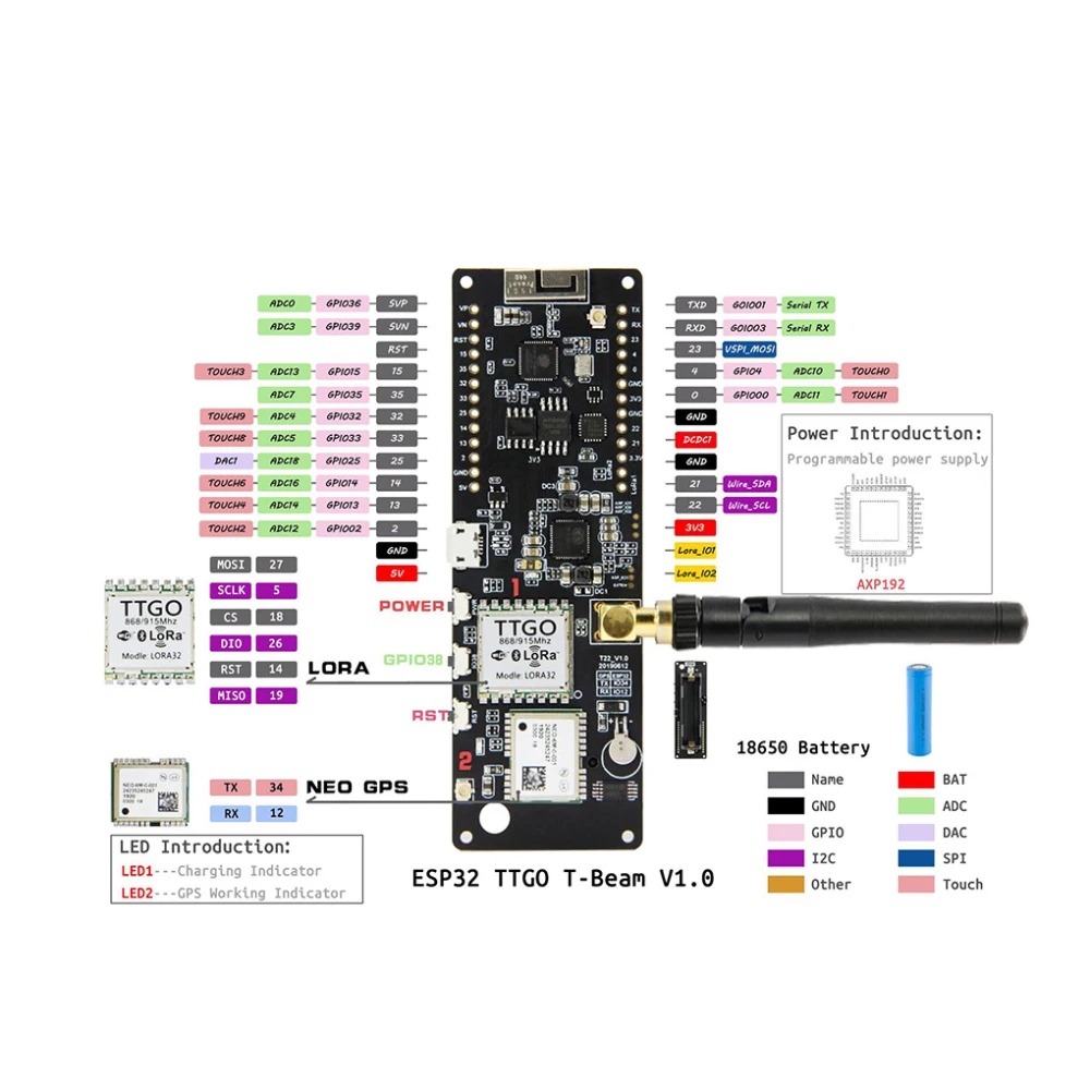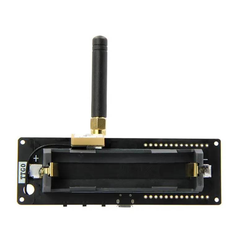 Función RSSI digital, corrección automática de frecuencia.Control automático de ganancia, detección de bajo voltaje y sensor de temperatura.Despertador rápido y salto de frecuencia.Manipulador de paquetes de datos altamente configurable.Módulos, fuente de alimentación 3V-5V Universal.Módulo destinado con antena cerámica, señal Super.Guarde los datos del parámetro de configuración EEPROM abajo.Con batería de respaldo de datos. Hay indicador de señal LED.Especificación:Voltaje de funcionamiento: 1,8 ~ 3,7 V.Corriente aceptable: 10 ~ 14mA.Corriente de transmisión: 120mA @ + 20dBm, 90mA @ + 17dBm, 29mA @ + 13dBm.Frecuencia de funcionamiento: 430/470MHz (versión 430HMz). /868M/915M (versión de 868MHz).Potencia de transmisión: + 20dBm.Sensibilidad de recepción:-139dBm @ LoRa & 62,5 Khz & SF=12 & 146bps.-136dBm @ LoRa & 125Khz & SF=12 & 293bps.-118dBm @ LoRa & 125Khz & SF=6 & 9380bps.-123dBm @ FSK y 5Khz y 1,2 Kbps ..Error de frecuencia: +/-15KHz.Espacio FIFO: 64Byte.Velocidad de datos: 1,2 K ~ 300Kbps @ FSK, 0.018K ~ 37,5 Kbps @ LoRa.Modo de modulación: FSK,GFSK,MSK,GMSK,LoRa TM,OOK.Forma de interfaz: SPI.Corriente de sueño: 0.2uA @ SLEEP, 1.5uA @ IDLE.Temperatura de funcionamiento: -40 ℃- + 85 ℃.Nota:Puede haber un poco de distorsión de color debido a las diferentes resoluciones del ordenador.Puede haber errores de tamaño debido a las diferentes resoluciones del ordenador.El paquete incluye:1 * TTGO T-Beam ESP32.1 antena.2 * Pin.