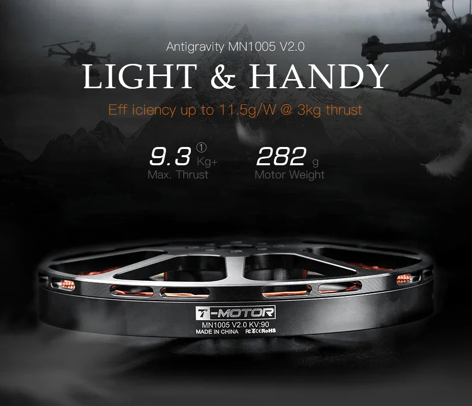 Comprar T-MOTOR-motor de avión ultraligero MN1005 V2.0 KV90, de gran empuje, antigravedad 1005 V2.0, sin escobillas, 11,5 g/W a 3kg