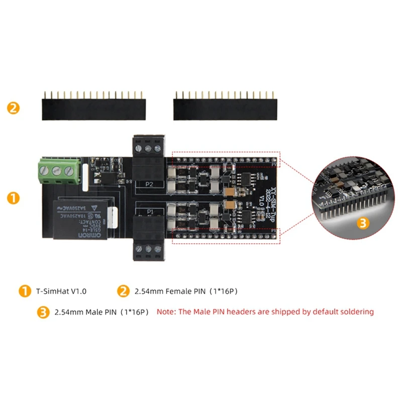 T-simhat CAN RS485 relé 5V con módulo de aislamiento optoacoplador T-SIM Placa de desarrollo de expansión de la serie para ArduinoT-simhat es un módulo de LILYGO equipado con CAN + RS485 + relé, que admite la combinación con la serie T-SIM: T-SIM7000G, A7670.
