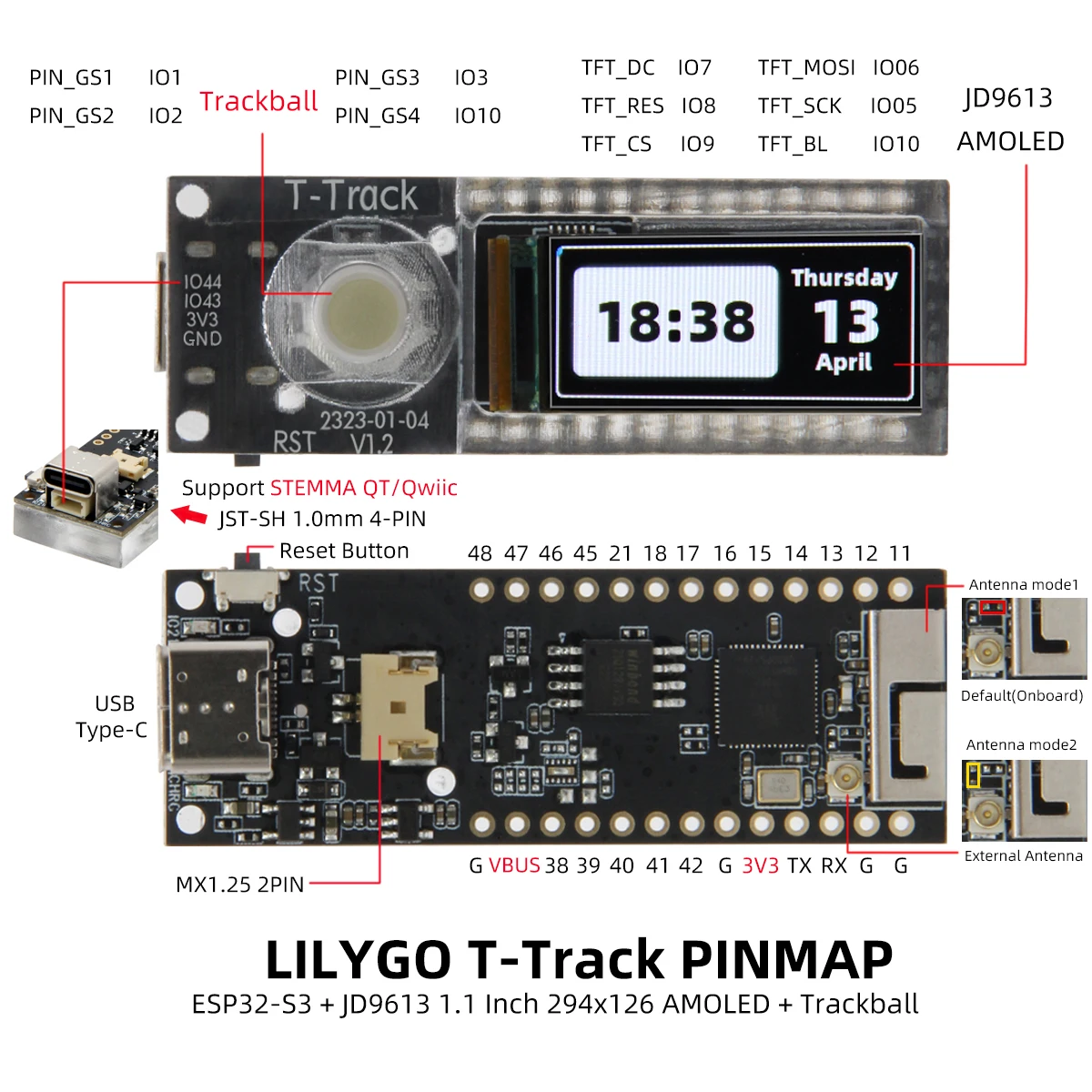 Comprar T-Track ESP32-S3 AMOLED Placa de desarrollo de Trackball ESP32-S3R8 WiFi Bluetooth pantalla de 1,1 pulgadas módulo inalámbrico Arduino