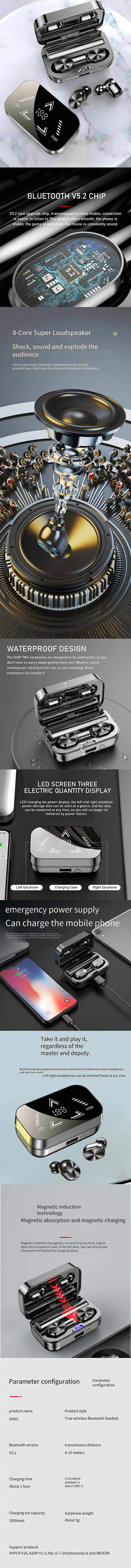 Comprar T16B-auriculares TWS con bluetooth 5,2, dispositivo de audio estéreo HiFi envolvente, batería de 1200mAh, resistente al agua, pantalla Digital LED, Control táctil, para deportes internos