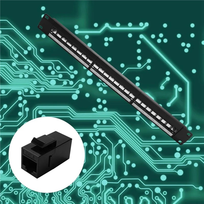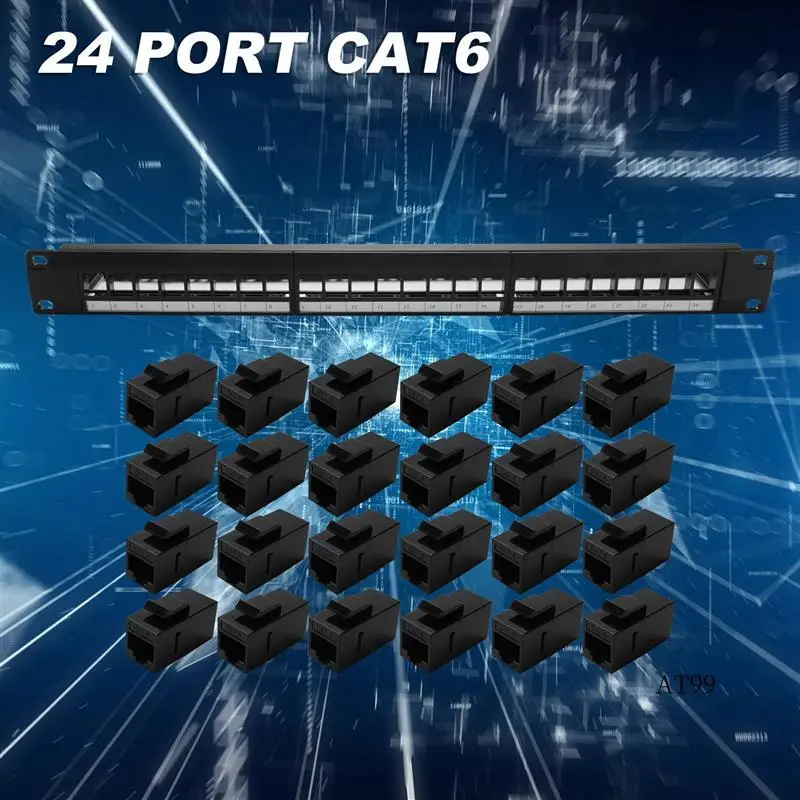 Cubierta de estante para gabinete TA-19 pulgadas 1U, Panel de conexión CAT6 de 24 puertos, puerto de contacto RJ45, marco modular (puerto de contacto RJ45)