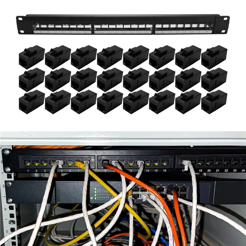 Este panel de conexión modular, 24 módulos son módulos directos sin cables, se pueden conectar directamente al cable de red, son fáciles de instalar y operar.