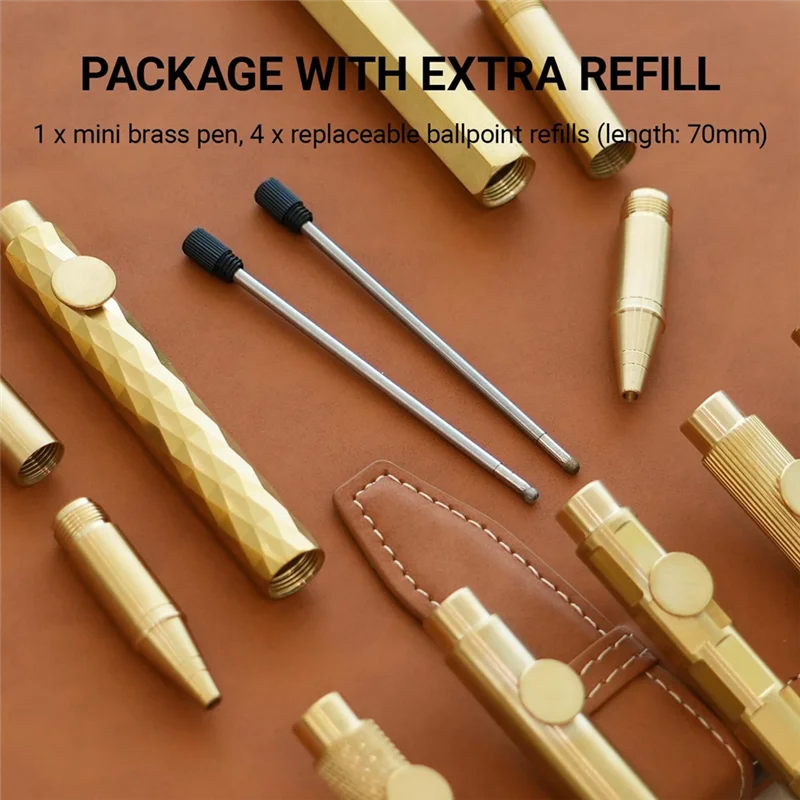 TA-Mini EDC-Bolígrafo de bolsillo de latón, bolígrafo pequeño, corto y compacto, elegante, vintage para viaje, bolígrafo de regalo con 4 recambios