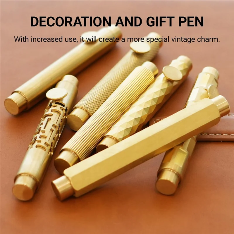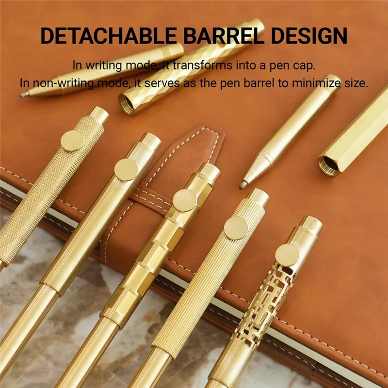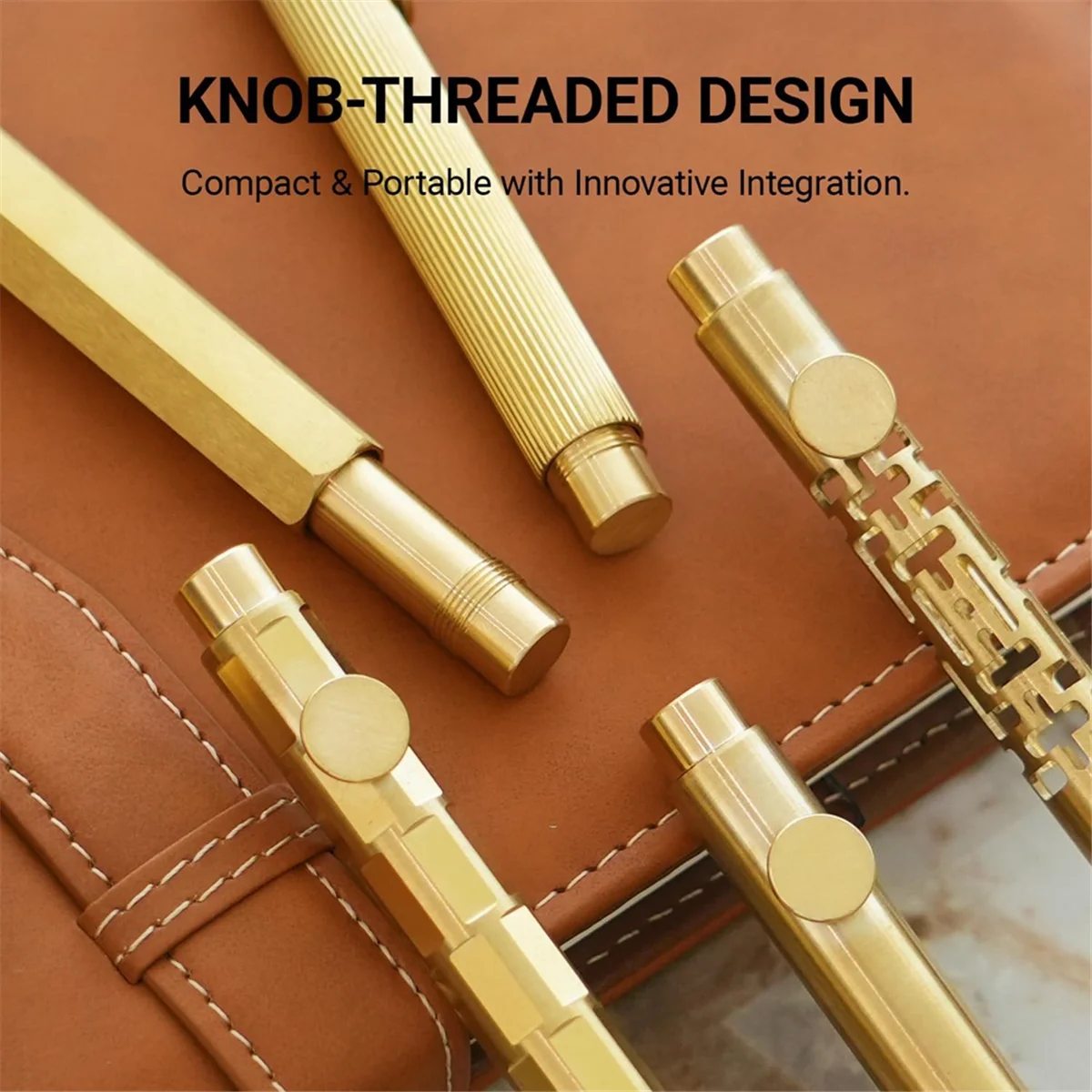 Todo el cuerpo del bolígrafo está fabricado con latón natural sólido y mecanizado con precisión con tecnología CNC, presenta exquisitos detalles texturizados y un agarre ergonómico para mantener el equilibrio.Combinando elegancia, belleza, durabilidad y portabilidad compacta: incarne una auténtica estética dorada vintage en un bolígrafo de bolsillo.