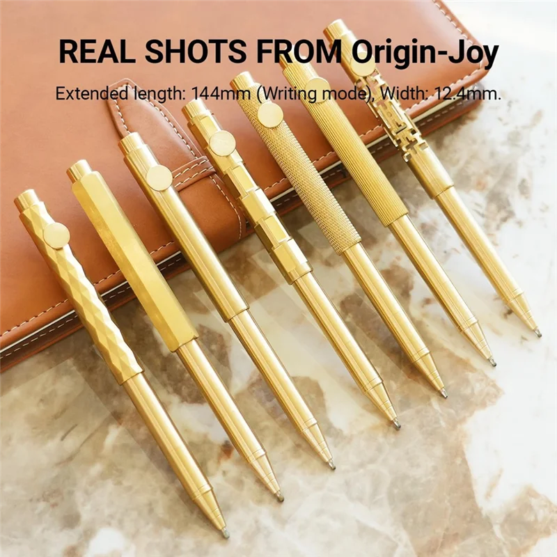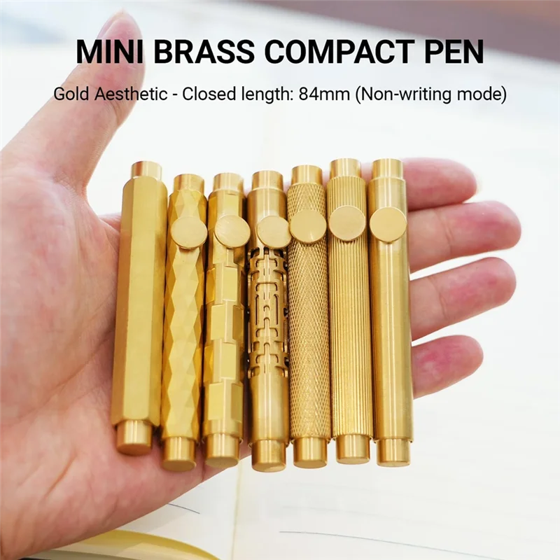 Mini bolígrafo de bolsillo de latón edc independiente con diseño y fabricación estéticos dorados, declaración original.