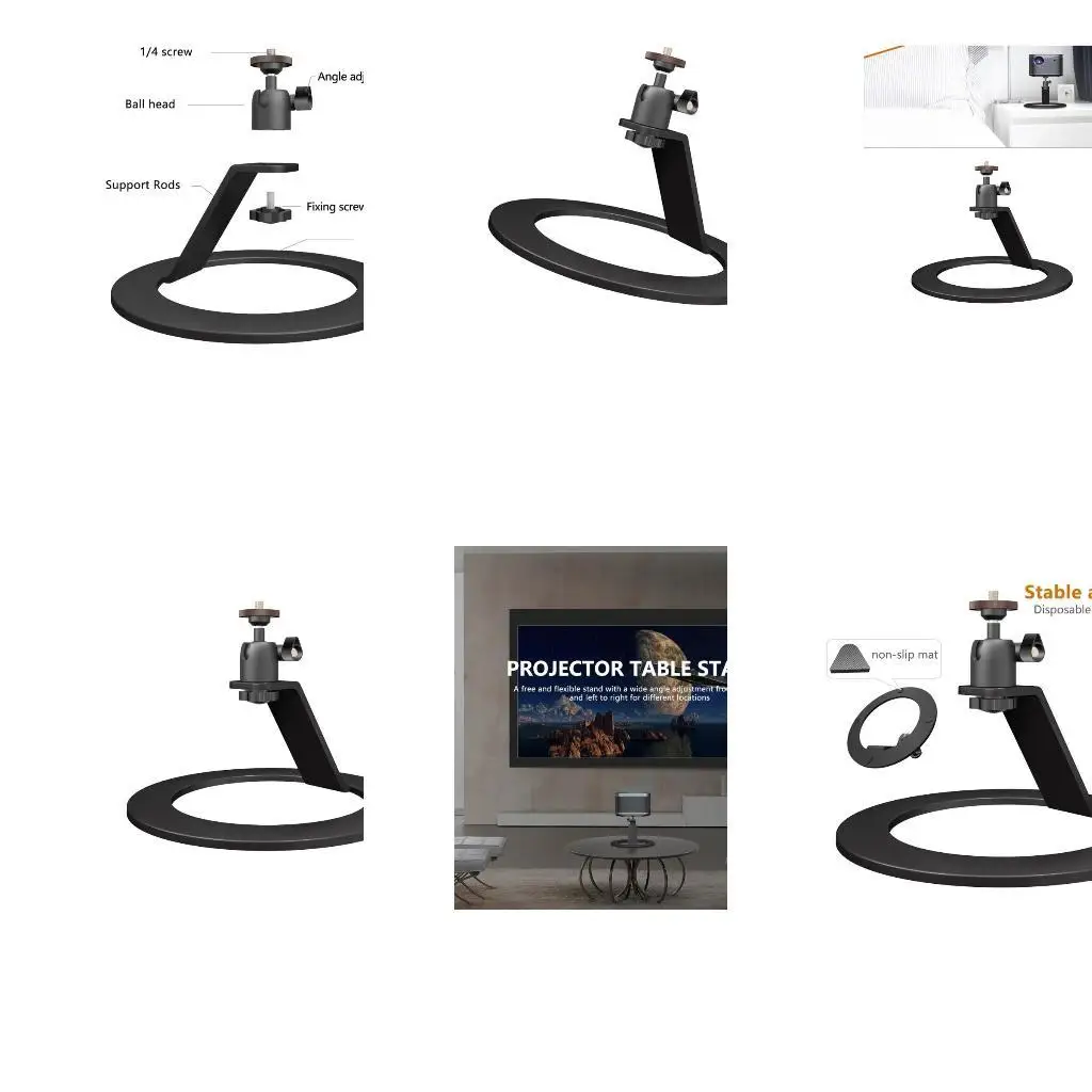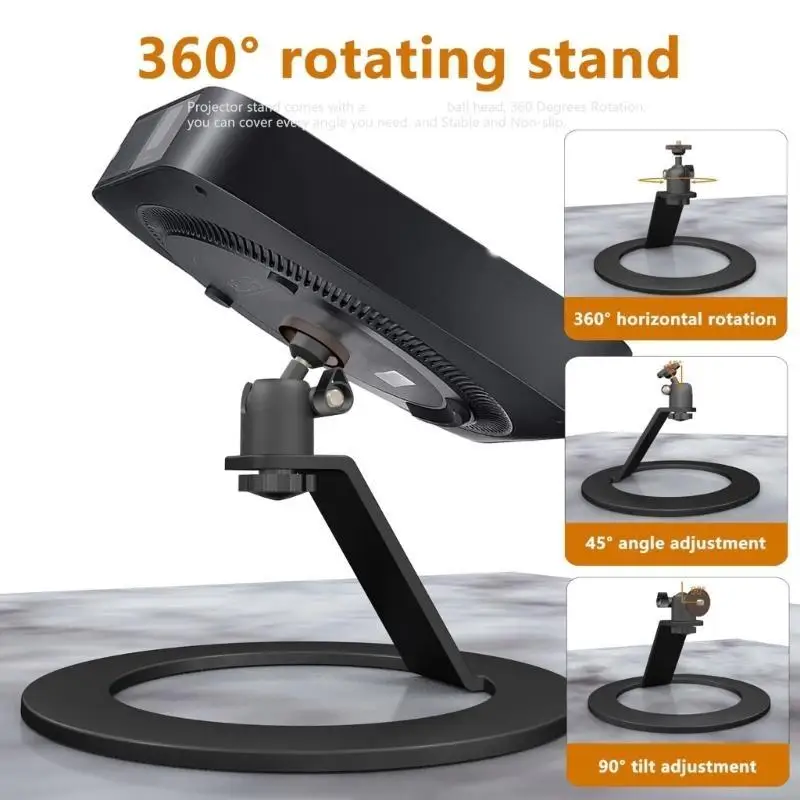 Características:OOTDTYEl soporte para proyector de aluminio ofrece un cabezal esférico ajustable de 360 grados, lo que brinda una flexibilidad incomparable para ángulos de visión óptimados, esencial para mejorar su cine en casa o presentaciones.
