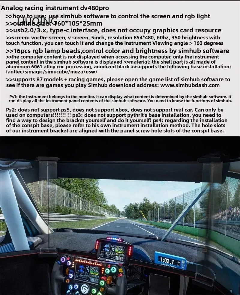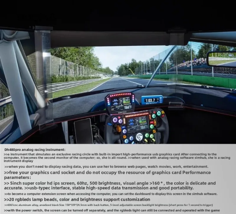 - DV480 PRO es una pantalla de tablero de carreras sim.