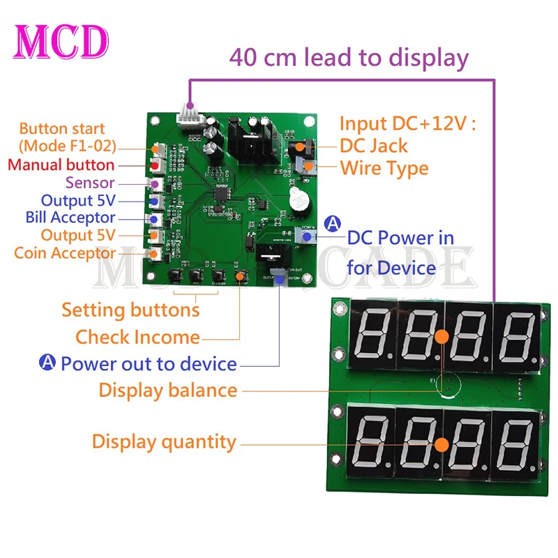 l Inbuilt 6 digits counter: Record received siganls from bill acceptor, coin acceptor, and sensor.