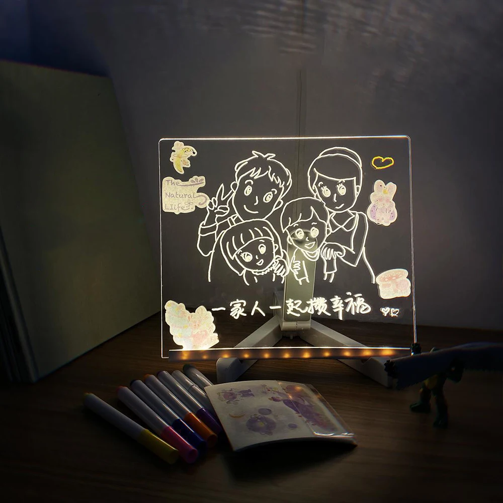 Comprar Tablero de dibujo luminoso con luz cálida para niños, tableta de Graffiti, luz mágica, divertido con bolígrafo fluorescente, juguete educativo para niños