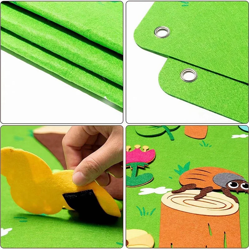 Amplia gama de usos: los guiones gráficos de fieltro para niños se pueden usar como juguetes artesanales para niños pequeños. Cuando se ensambla, es una hermosa pieza decorativa que es el complemento perfecto para aulas, dormitorios, guarderías y salas de juegos. Su hijo puede divertirse y despertar su imaginación en cualquier momento y en cualquier lugar con el conjunto de guiones gráficos de fieltro.