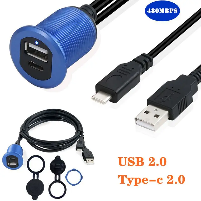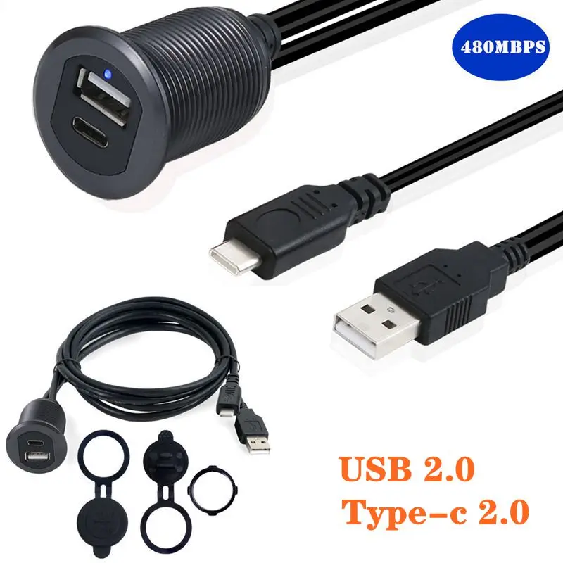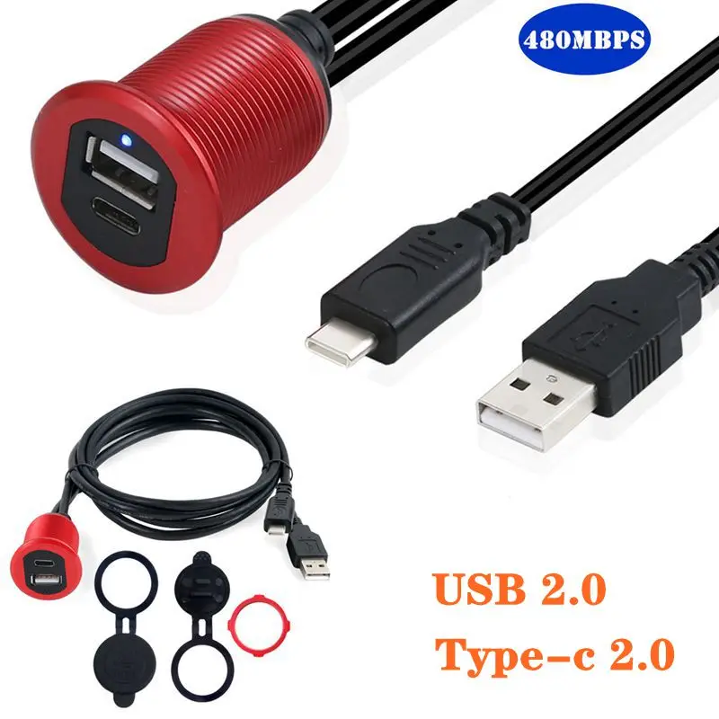R: Tablero de coche, yate, motocicleta con luz LED USB2.0/3,0 macho a hembra + cable de conexión versión tipo c 2.0 1M;