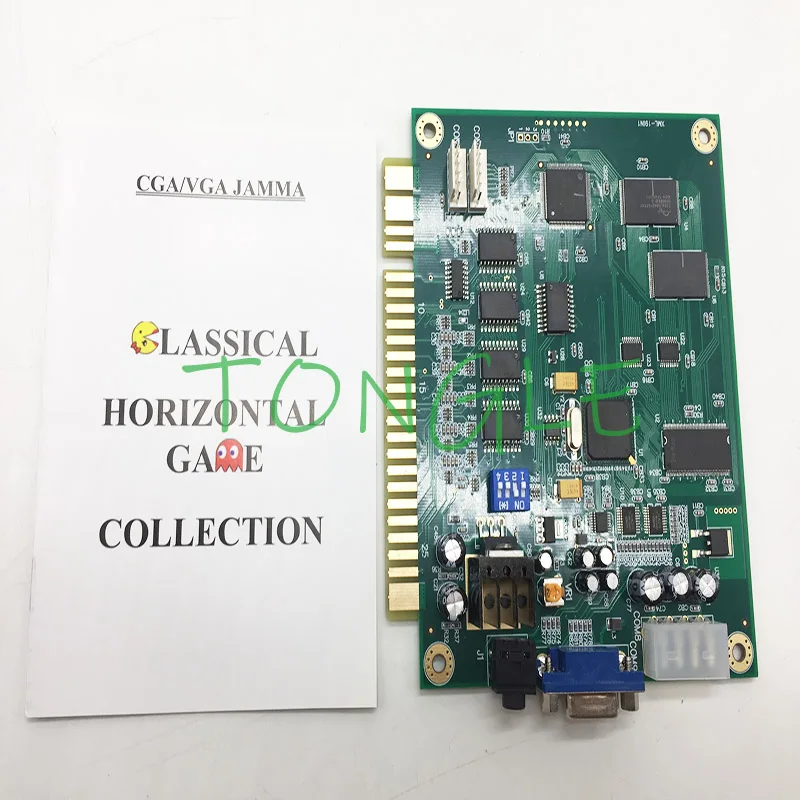 Specification:1. 60-in-1 multi game board, checking games.2. Supports CGA ( standard resolution ) and VGA ( high resolution ) monitors.3. Easy installation via JAMMA and VGA connection.4. Built in mounting holes for easy cabinet installation.5. User friendly game selection interface.6. Supports upright and cocktail cabinets ( screen will automatically flip for second player ).7. Supports trackball or joystick controls.8. High score saver, free play or coin / token option.9. Enable / disable specific games, each game is fully customizable ( difficulty, game speed, number of lives, etc. ).