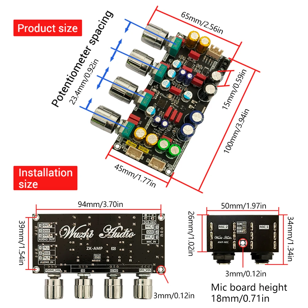 Interfaz de micrófono: potenciómetro de interfaz de micrófono doble de 6,35 mm: potenciómetro único de 10 K, mango quincunx de 6 mm
