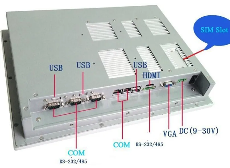 PC de panel sin ventilador HD de 12 "450 cd/m2 1024*768 con Intel Atom D2550 dual core 1,86 GHz, pantalla táctil resistiva, RAM DDR3L de 2GB a bordo