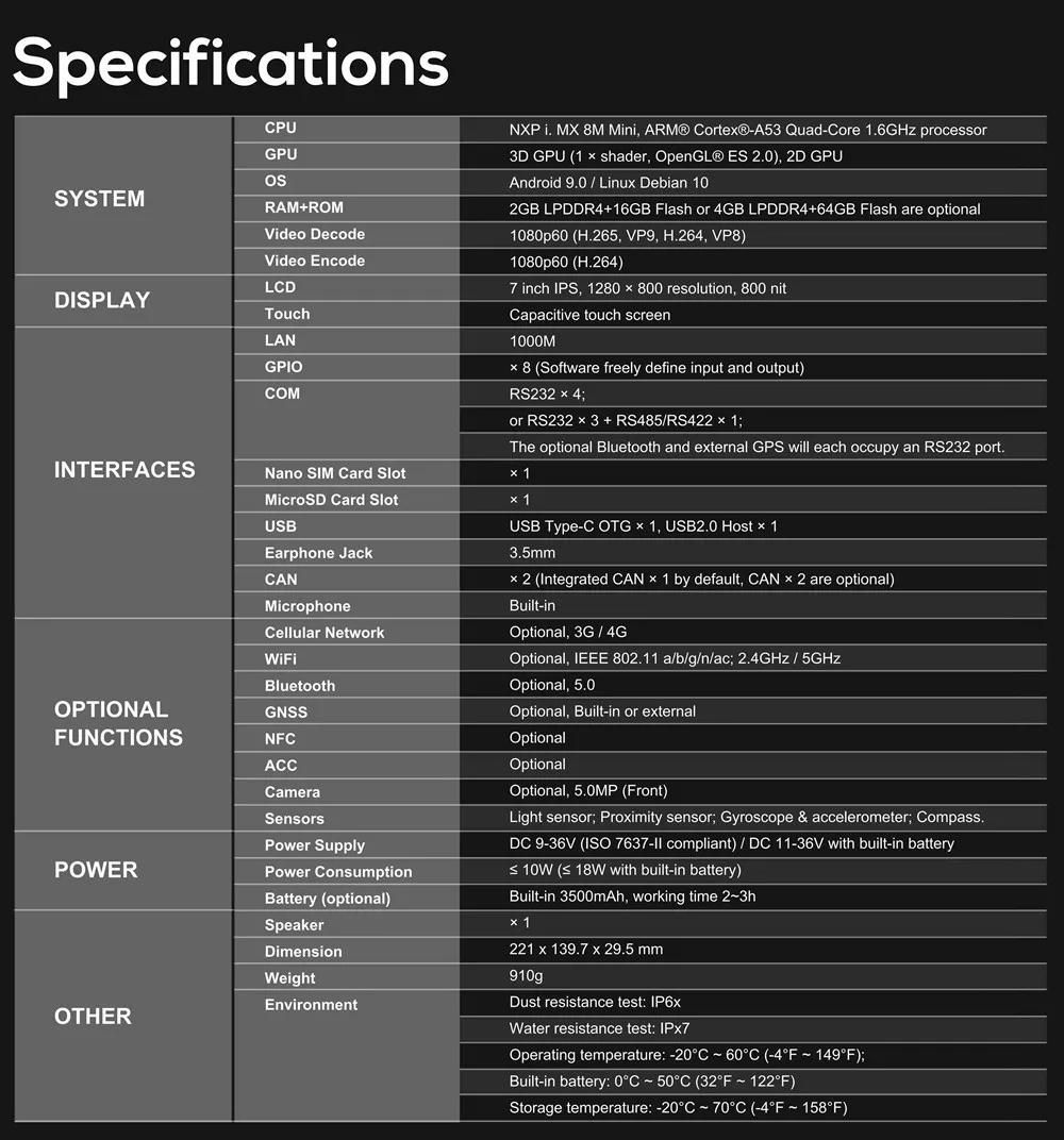 Comprar Tableta Android original K71 resistente, Terminal de datos móvil montado en el vehículo, MDT, 7 ", NXP i, RJ45, RS232, gestión de flotas de BUS CAN