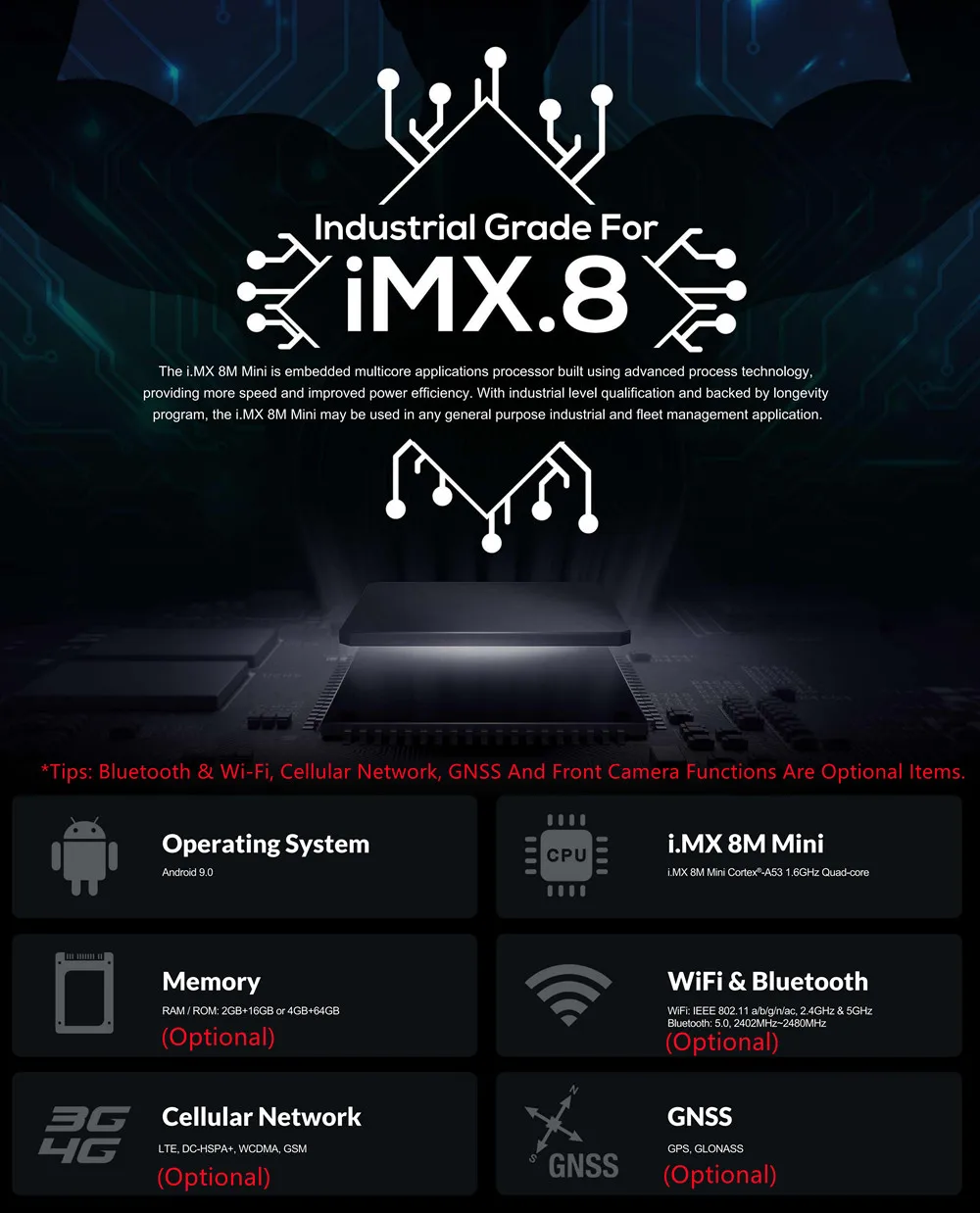 CPU: NXP I. MX 8M Mini, ARM® Cortex®-A53 Quad-Core 1,6 GHz