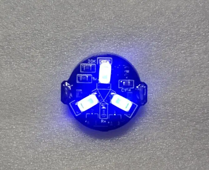 Este modelo es una luz LED de alto brillo (alimentada por el botón CR2032, 3 5730 LED de alto brillo, alto brillo, larga duración de la iluminación; El diámetro es de 20mm, la Oreja de la batería es ligeramente más ancha y el grosor es de aproximadamente 6mm con modo intermitente.