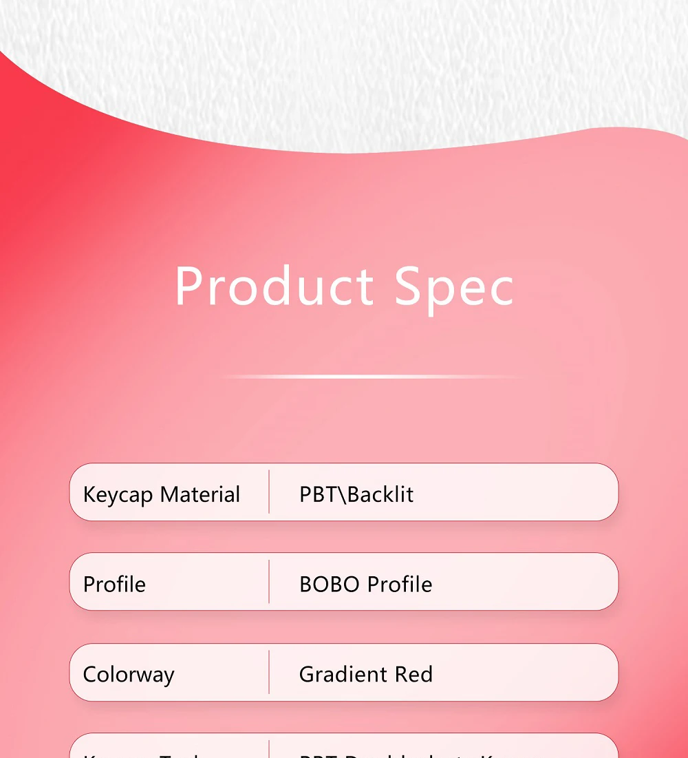 Comprar Taihao BOBO Profile Rosy Cloud PBT Doubleshot keycaps para juegos diy, Teclado mecánico oem profile Red 1.75u shift Only of 87
