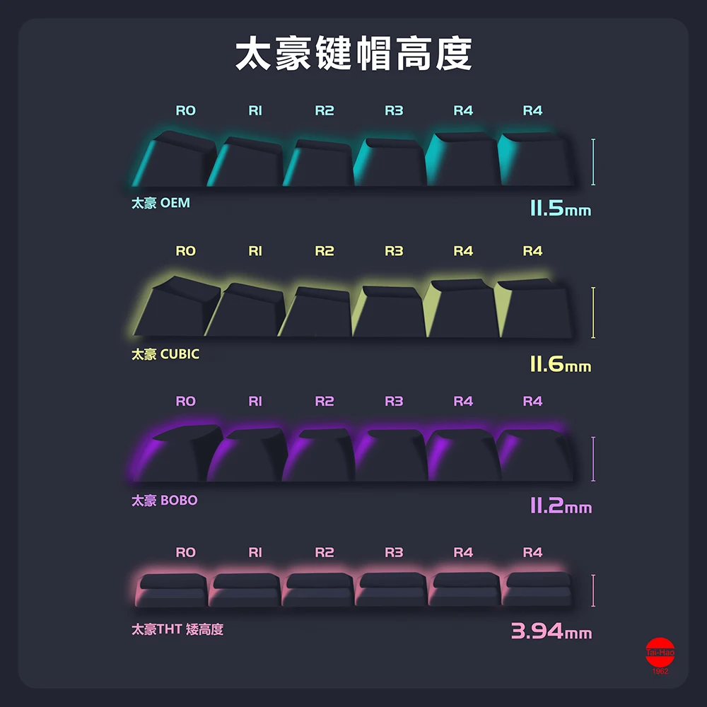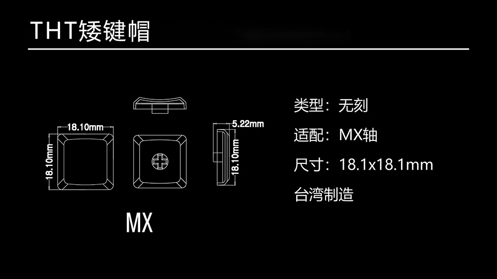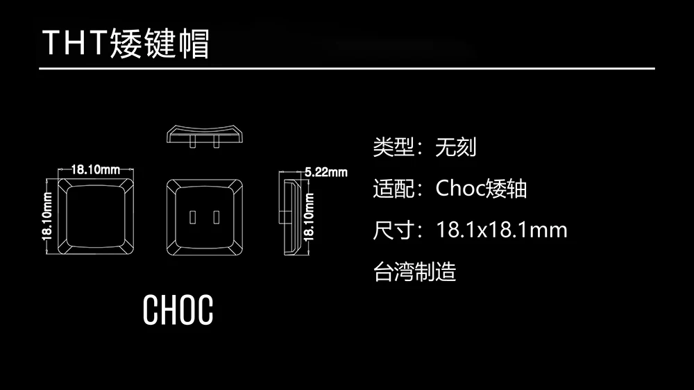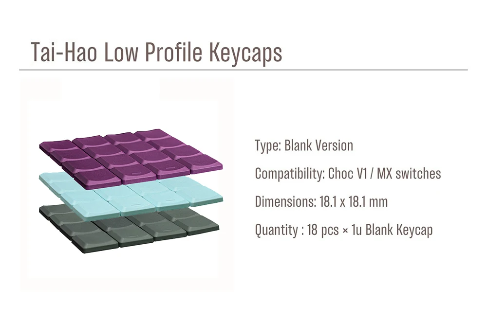 Taihao Choc Teclas de perfil bajo THT 1U MX Cherry Artisan Teclas para teclado mecánico Accesorios para juegos Punto Tecla gris