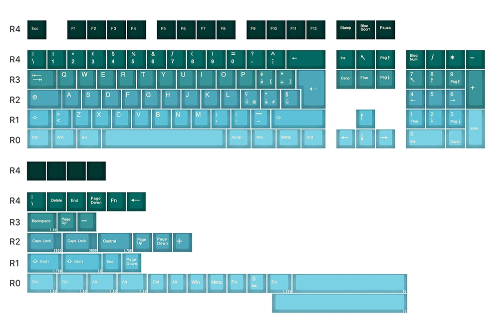 Comprar Taihao-gradientes verdes de pino para teclado mecánico, teclas de doble tiro, italiano, ABS, bricolaje, cúbico, para BM60, BM68, BM80, BM65, BM68
