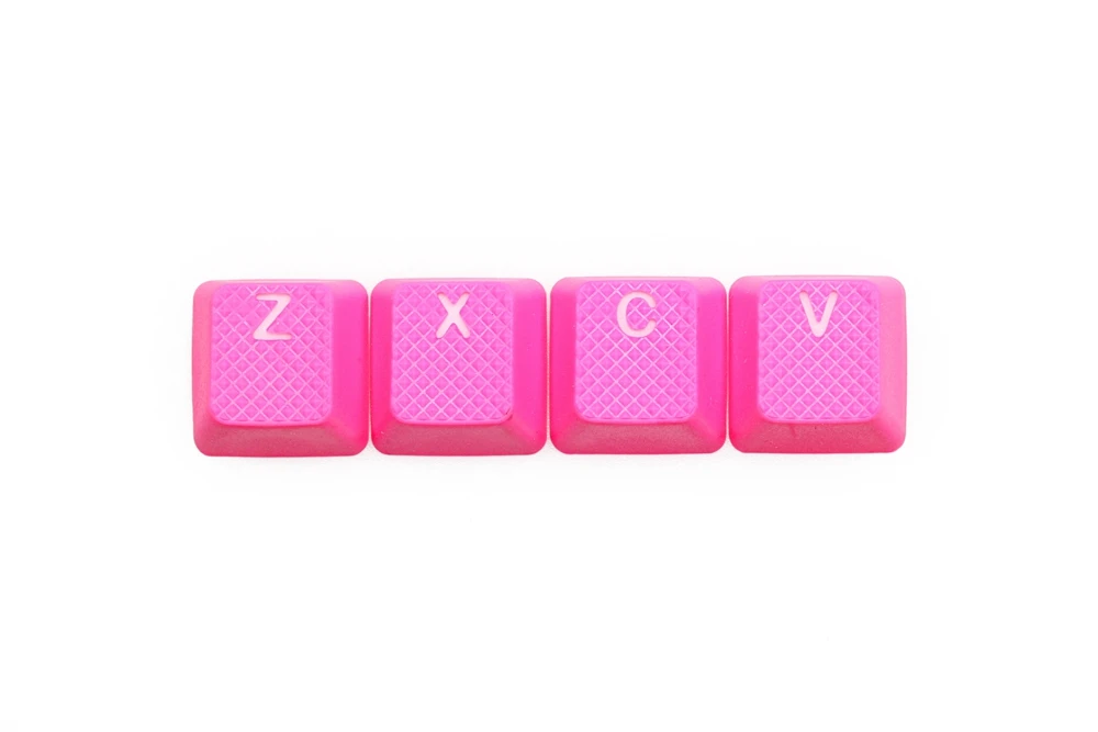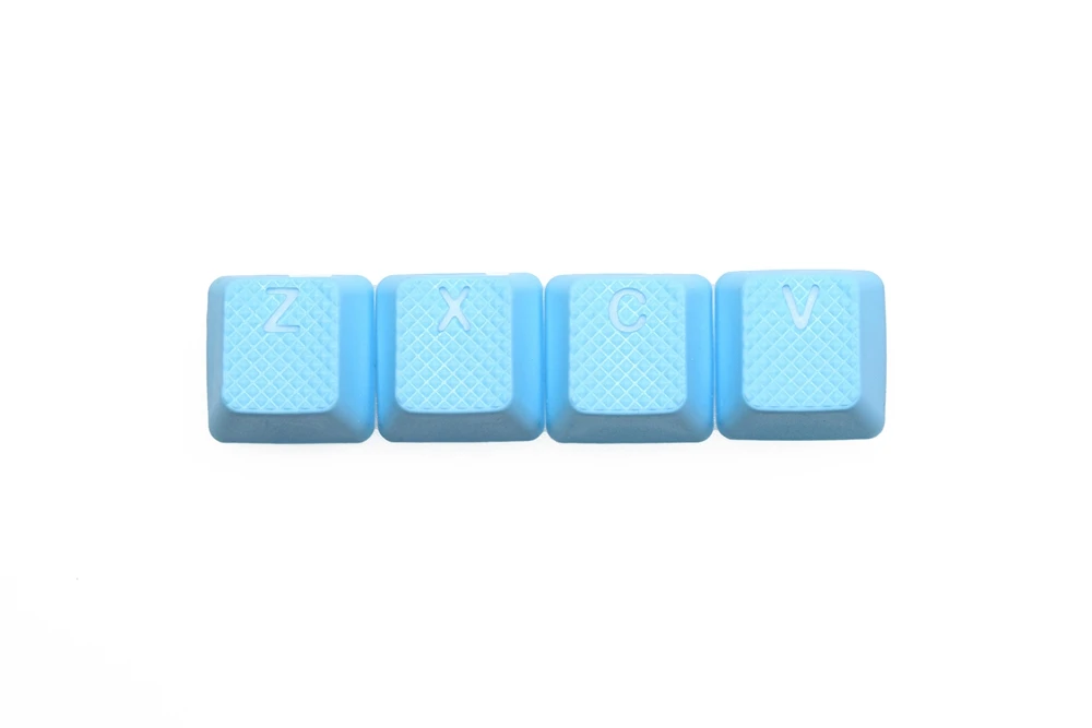Tai-HaoCompatible con Cherry MXPerfil OEMJuego de 4 teclas (Z,X,C,V)Teclas de brillo DoubleshotABS engomadoTenga en cuenta:La durabilidad de los materiales de caucho está influenciada por varios factores ambientales.Depende de cómo y de qué manera los usuarios frotan las teclas.A diferencia de las teclas de plástico ABS y PBT normales, las teclas de goma necesitan más cuidado debido a su propiedad material.