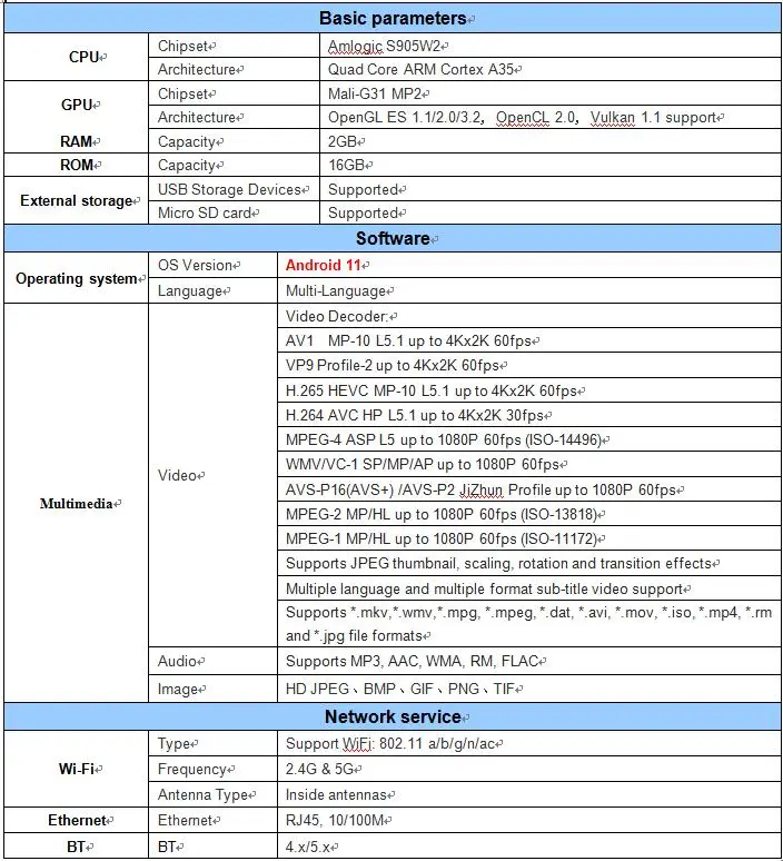 -CPU:Amlogic S905W2 Quad Core 64bit Cortex A35;