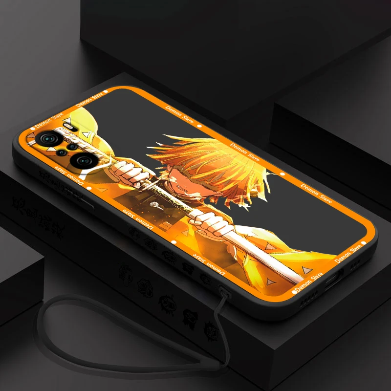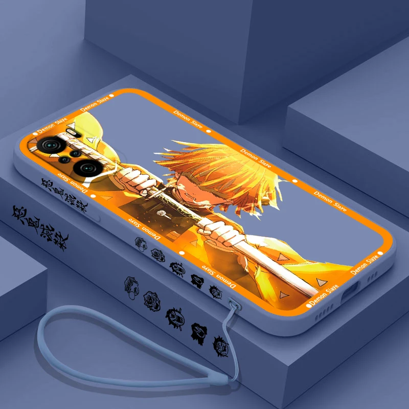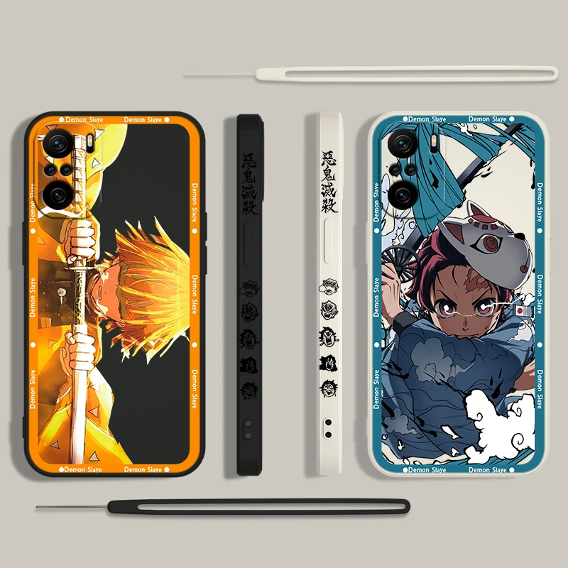 Tanjiro Anime Demon Slayer para Xiaomi Redmi Note 13, 12, 12Pro, 11, 11S, 11T, 10S, 10 Pro Plus, 5G, funda de teléfono líquida con cuerda izquierda