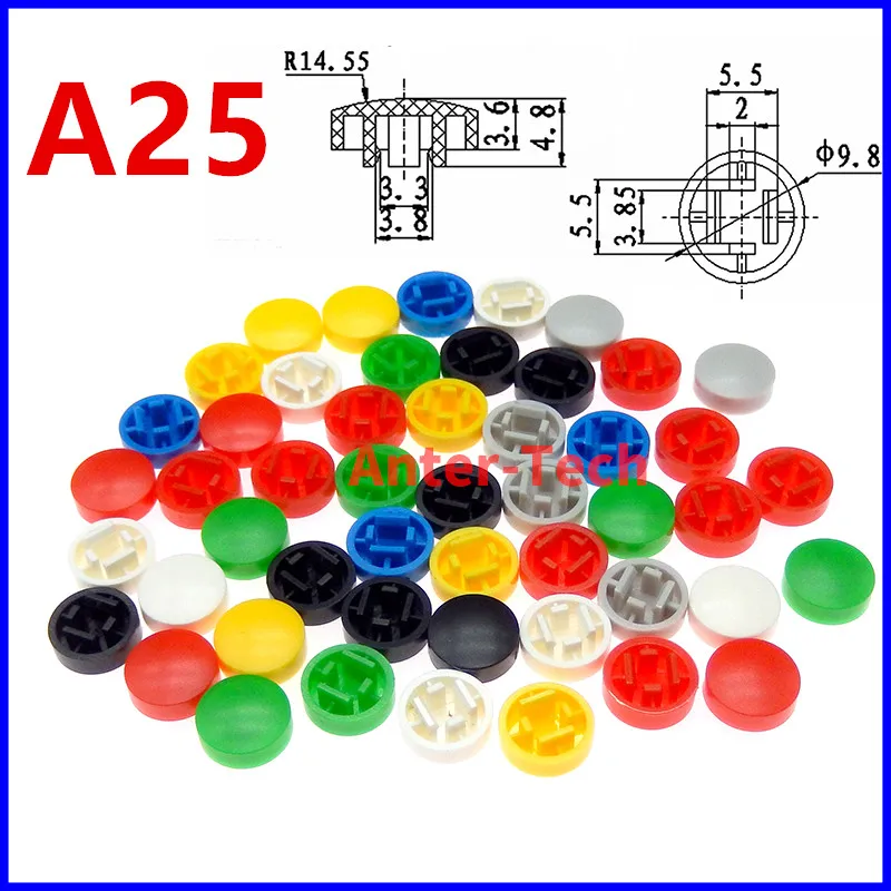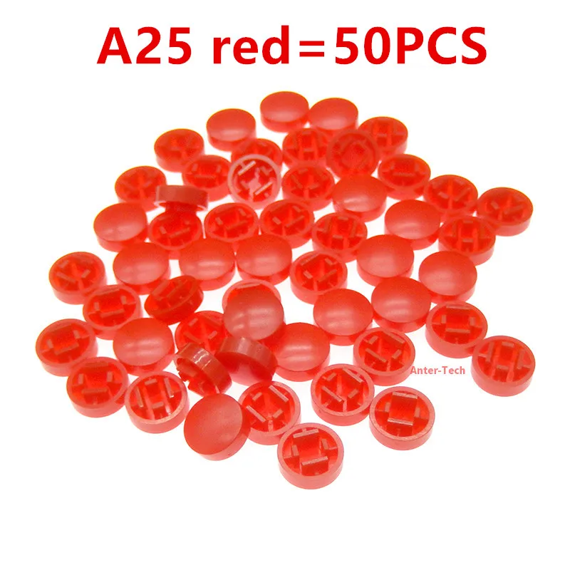 Comprar Tapa de botón de plástico A25, tamaño para B3F-4055, 12x12x7,3mm, Interruptor táctil de luz, 50 unidades