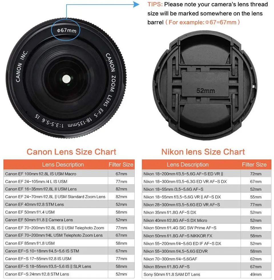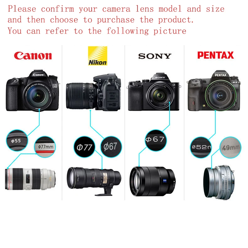 3.La tapa de la lente se adapta bien a lentes Canon/Nikon/Sony y se puede usar con el parasol por su diseño especial.