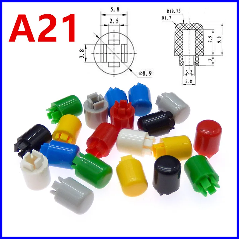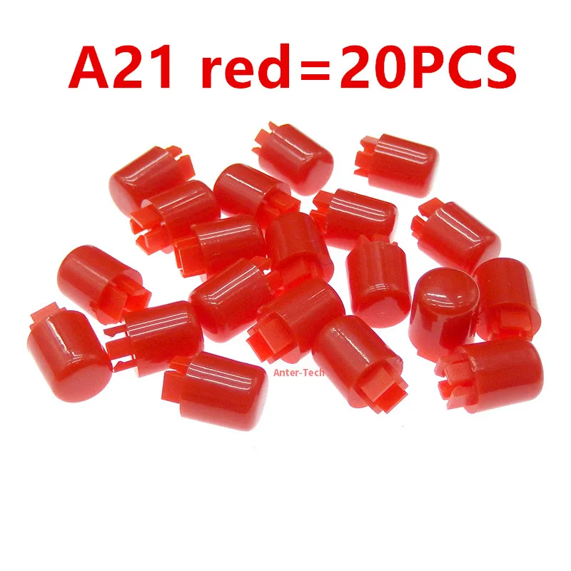 Comprar Tapa de llave 20 piezas A21, cubierta de botón redondo para B3F-4055, 12x12x7,3mm, tapa de tecla táctil de cabeza cuadrada, funda de plástico de color